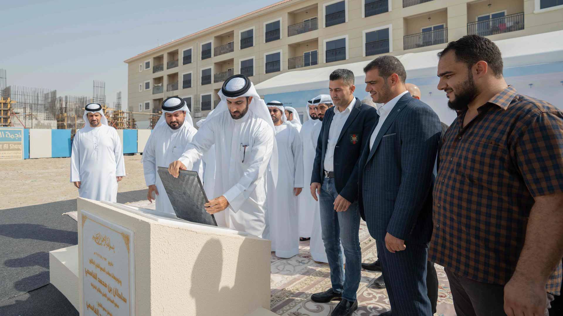 During the laying of the foundation stone, Sheikh Sultan bin Ahmed was briefed on the detailed plans of the Endowment of Hope Charitable, which consists of a commercial building located in Muwailih area and consists of four floors, including the ground floor.