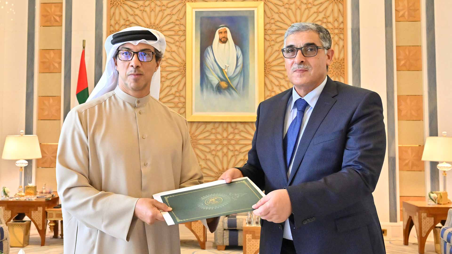 The meeting was attended by Sheikh Rashid bin Saud bin Rashid Al Mu'alla, Crown Prince of Umm Al Quwain; Sheikh Hamdan bin Zayed Al Nahyan, Ruler's Representative in Al Dhafra Region; Sheikh Tahnoun bin Mohammed Al Nahyan, Abu Dhabi Ruler’s Representative in Al Ain Region; Sheikh Suroor bin Mohammed Al Nahyan; Lt. General Sheikh Saif bin Zayed Al Nahyan, Deputy Prime Minister and Minister of the Interior; Sheikh Mansour bin Zayed Al Nahyan, Deputy Prime Minister and Minister of the Presidential Court; Sheikh Hamed bin Zayed Al Nahyan; Sheikh Khalid bin Zayed Al Nahyan, Chairman of the Board of Zayed Higher Organisation for People of Determination (ZHO), Sheikh Khaled bin Mohamed bin Zayed, Member of Abu Dhabi Executive Council and Chairman of Abu Dhabi Executive Office, and Sheikh Hamdan bin Mohamed bin Zayed Al Nahyan.