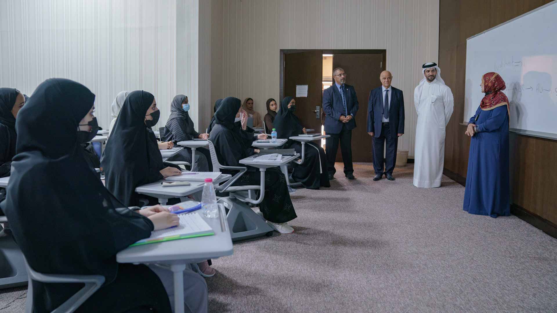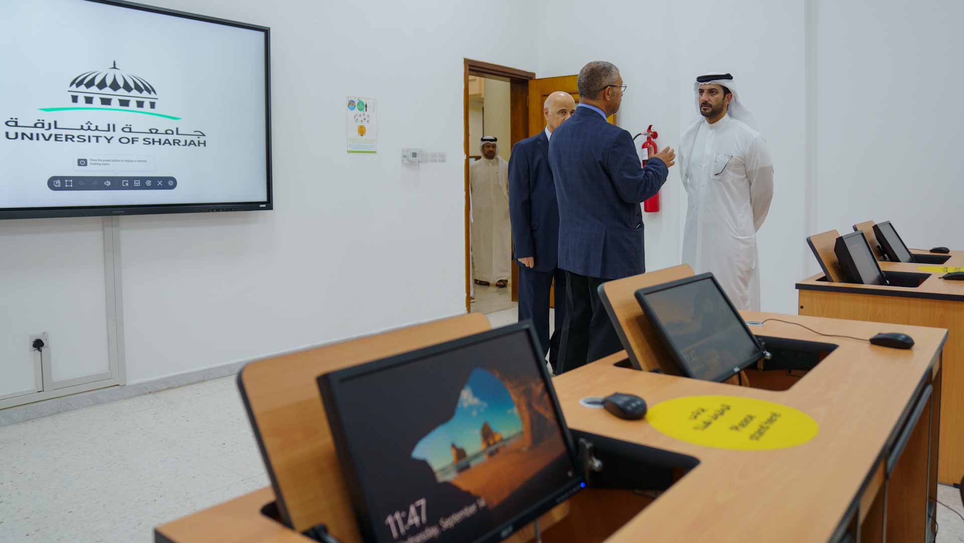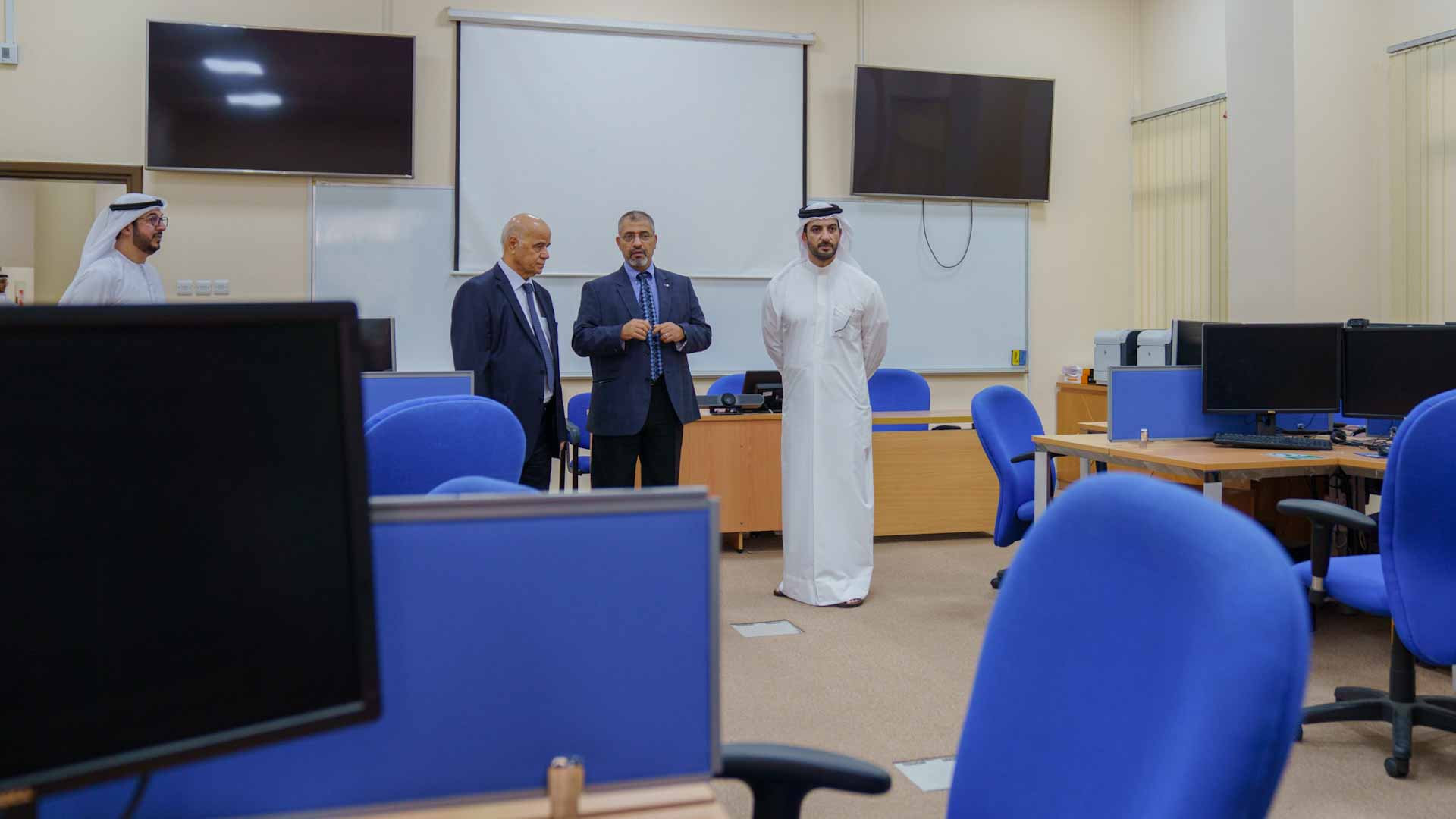 During his tour, Sheikh Sultan bin Ahmed was briefed on the teaching process in the different classes, and reviewed the teaching methods adopted by university professors using various scientific and practical skills and modern technologies that support the educational process.