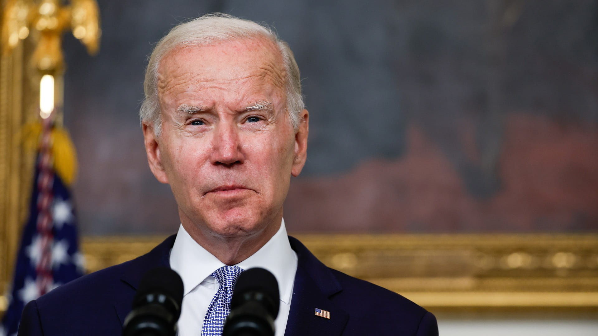Biden crossed himself and put his hand on his heart as he stood with his wife Jill on a gallery overlooking the flag-draped casket in the cavernous Westminster Hall while members of the public filed by.