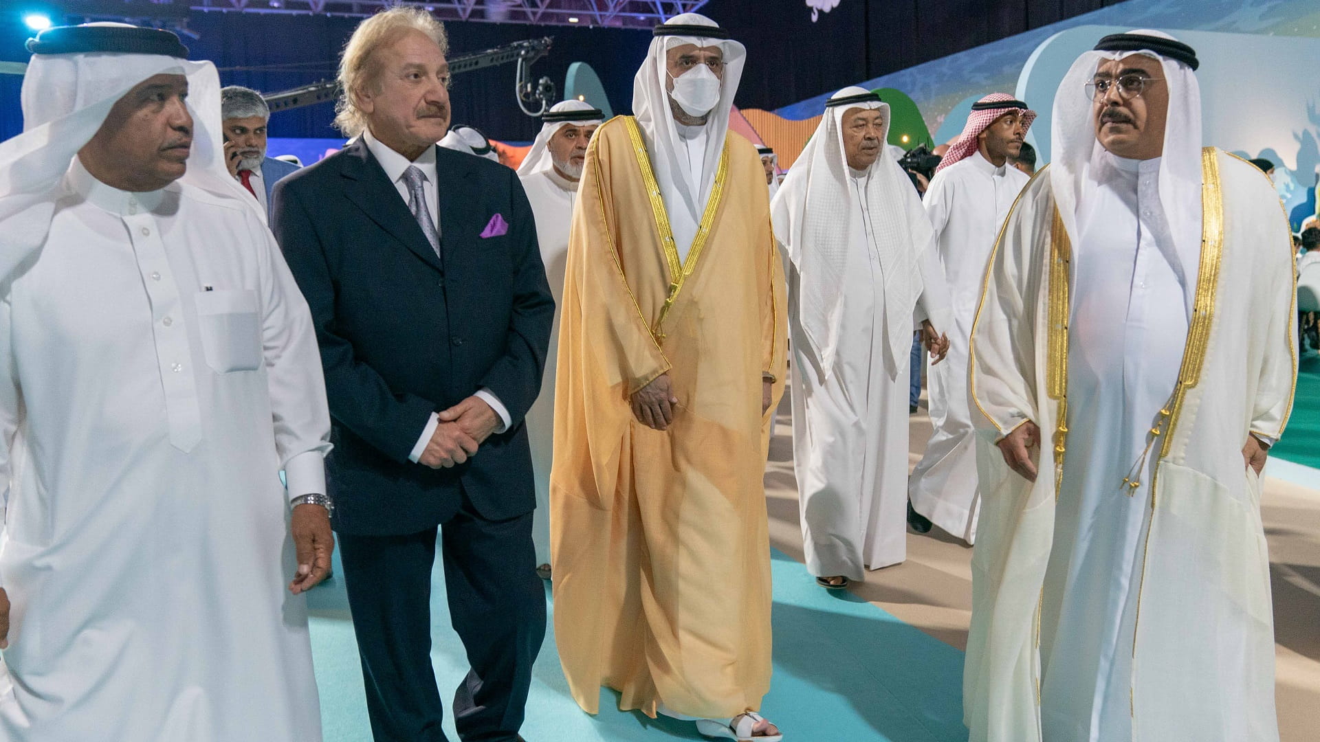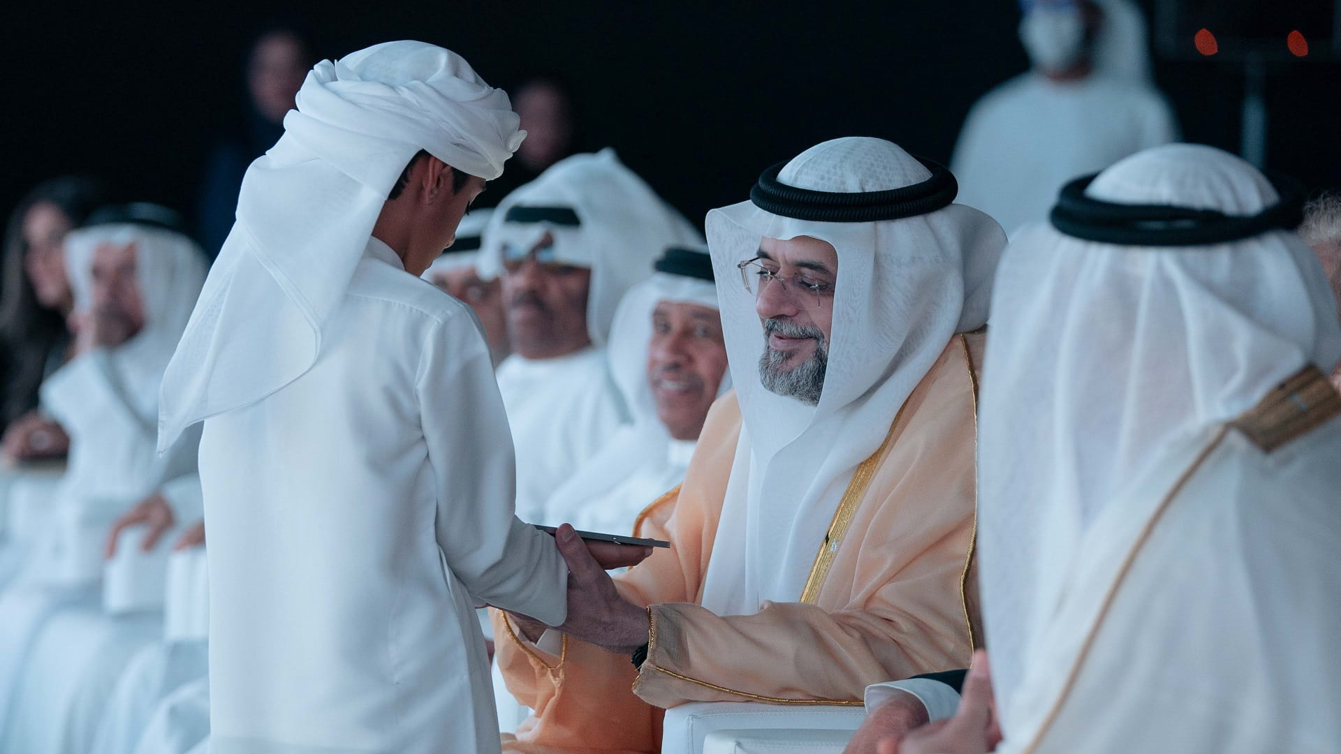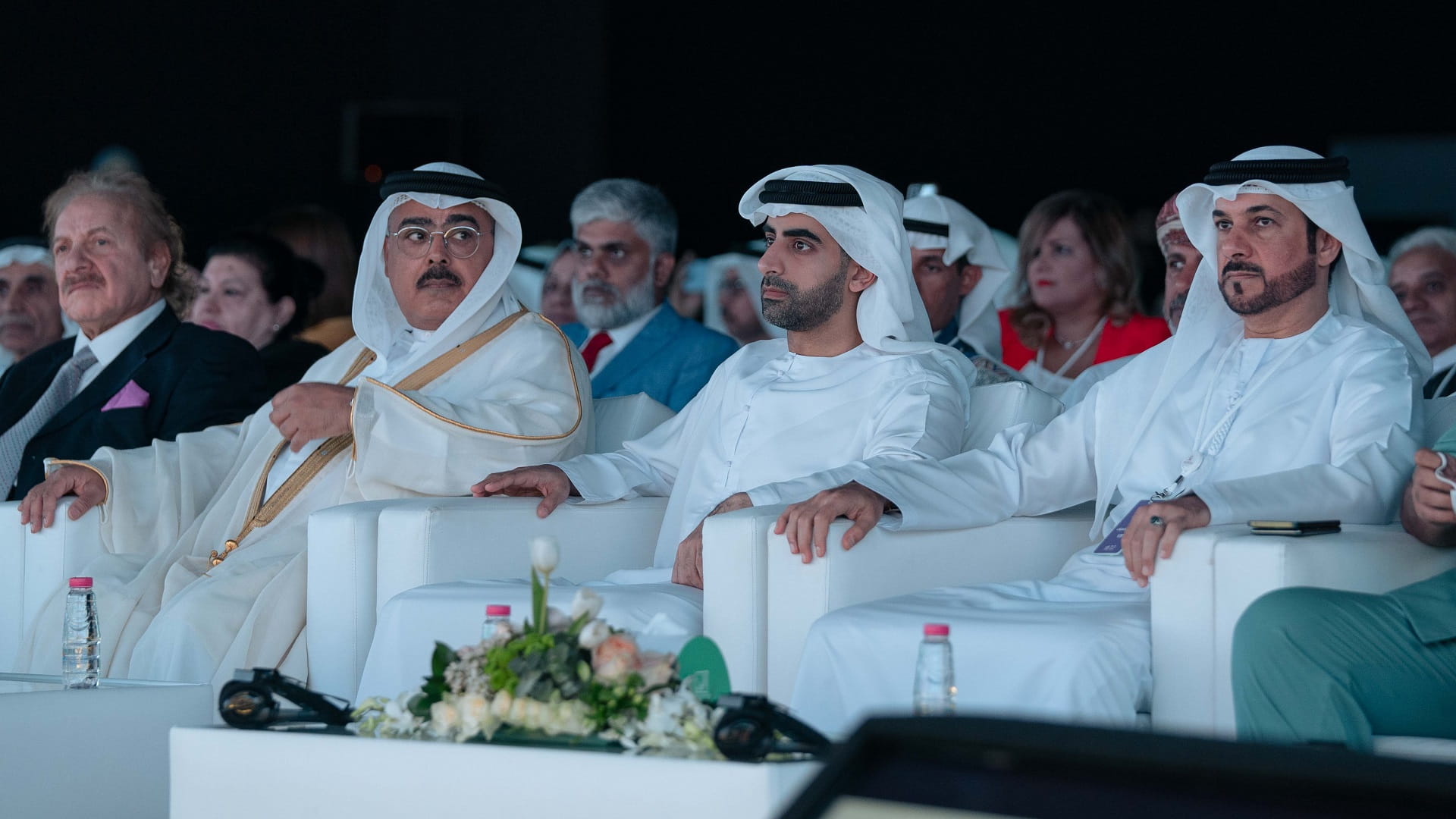 The Crown Prince and Deputy Ruler of Sharjah, during the opening performances, followed a segment presented by a group of artists, accompanied by a visual presentation on the screen.