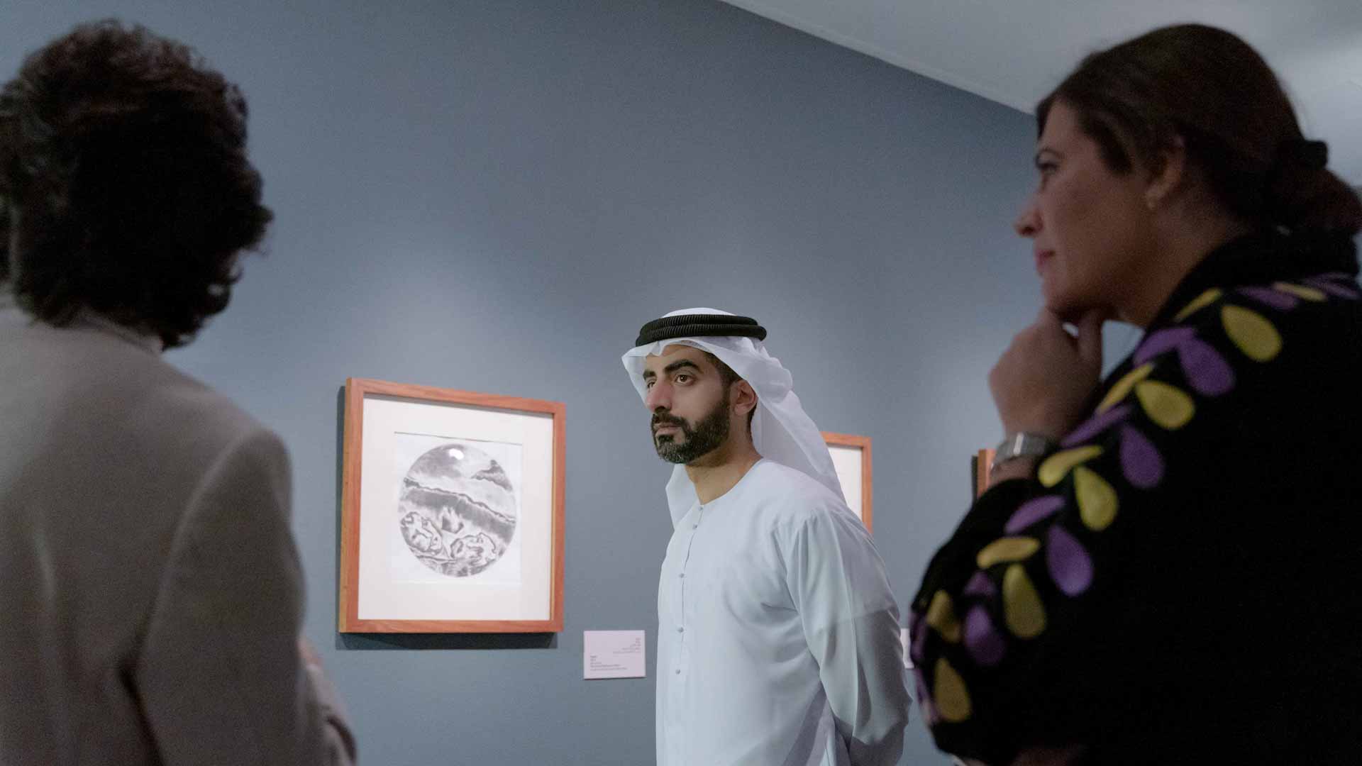Sheikh Salem bin Abdulrahman bin Salem Al Qasimi toured the exhibition, which includes more than 130 diverse artworks documented through Ismail Khayat’s artistic career of nearly six decades.