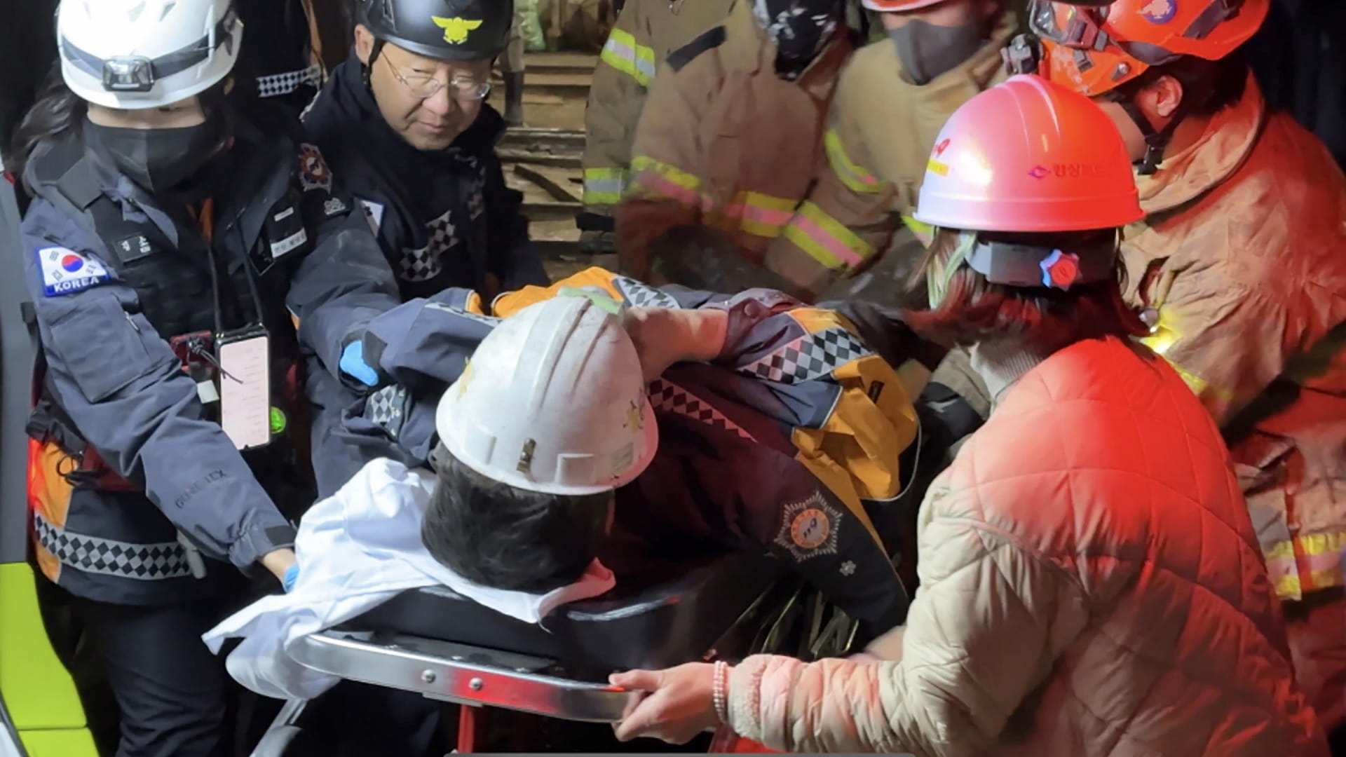 Medical staff attend to a person on a stretcher in the popular nightlife district of Itaewon in Seoul