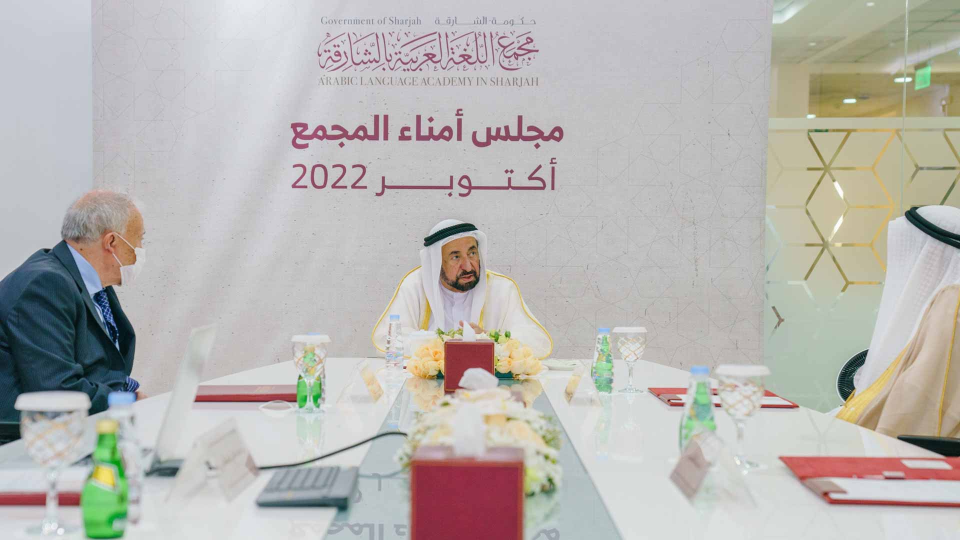 At the beginning of the meeting, His Highness the Ruler of Sharjah welcomed the attendees, praising the Academy's efforts in various fields of supporting the Arabic language.