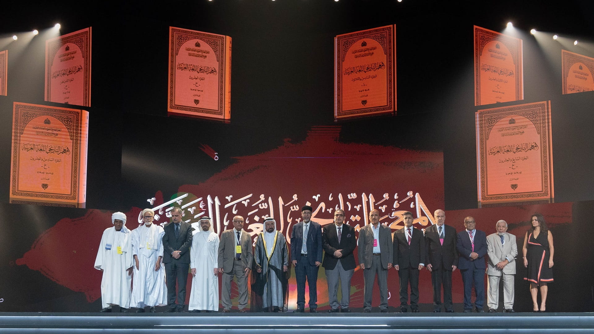 The inaugural ceremony also screened a short film documenting the progress of the Historical Corpus of the Arabic Language. Representatives of various Arab Language Academies who had a pivotal role in producing the new volumes of the Corpus also took a group photograph with the Ruler of Sharjah at the event.