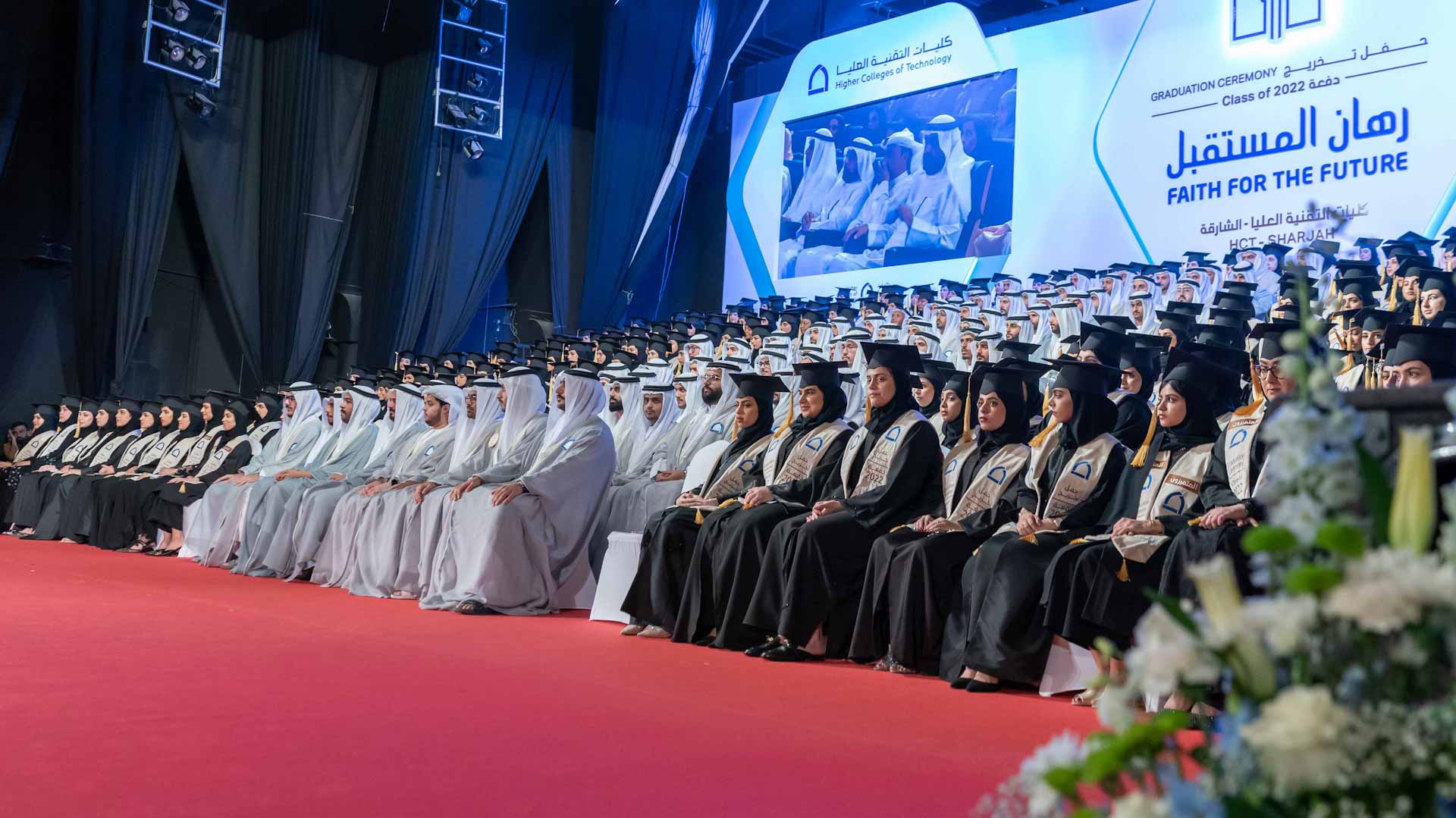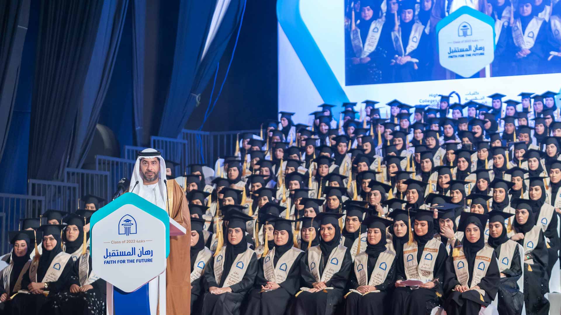 Then the graduation ceremony began, where Sheikh Salem bin Abdul Rahman Al Qasimi awarded the "scarf of pride" to distinguished parents for their support of their children's scientific excellence.