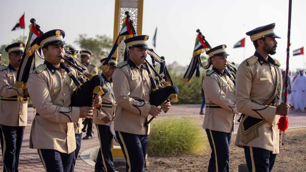 He stated that the activities of the National Day in the city began with a march from the municipality building through Mleiha Centre to Mleiha Public Park. Arab horses and camels in the forefront, followed by the musical band, and then department officials, employees, and the people of the area and neighboring areas took part in the celebration.