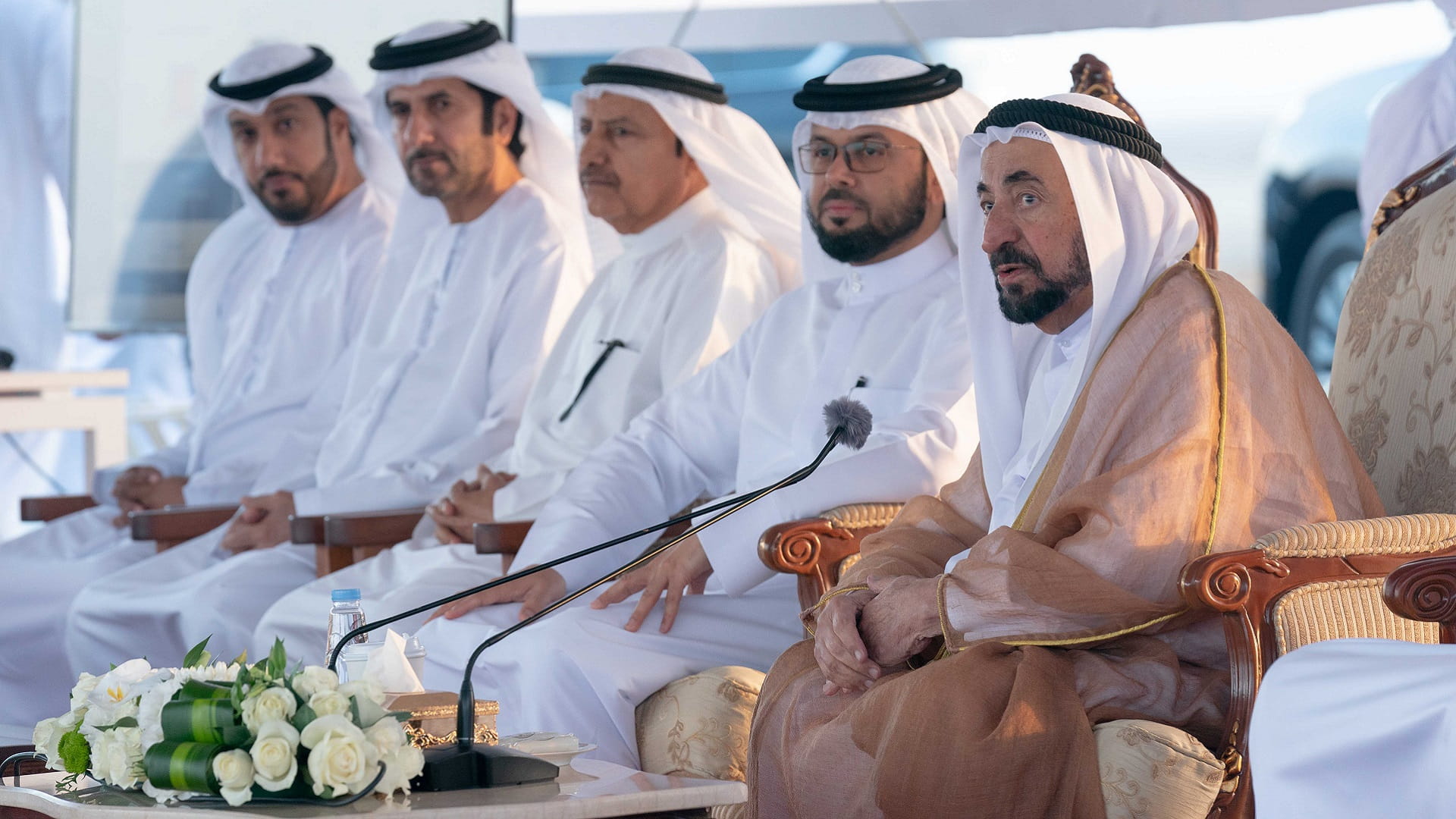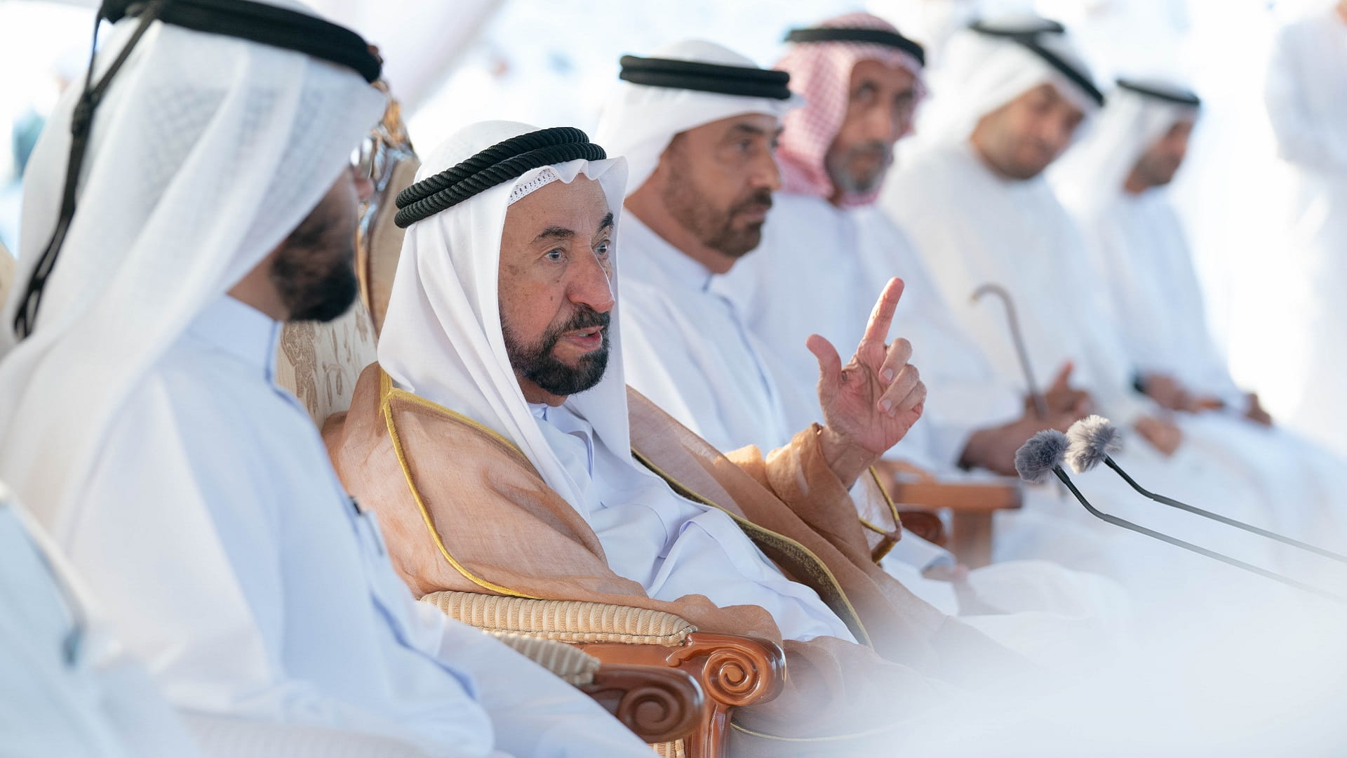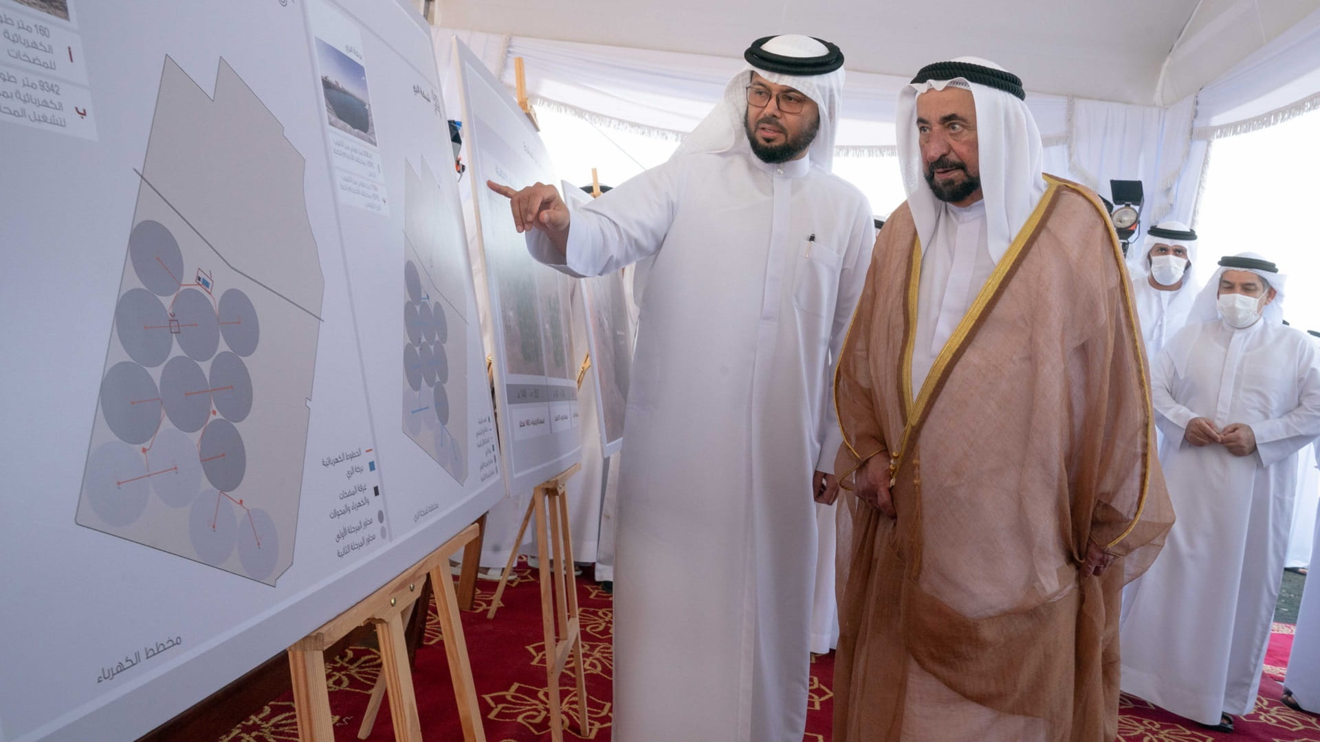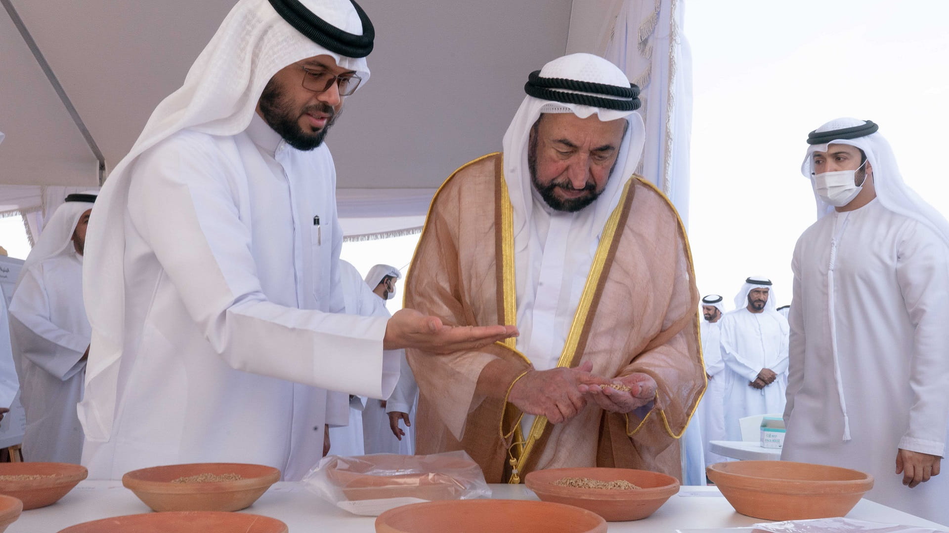 His Highness was accompanied by Dr. Eng. Khalifa Musabah Al Tunaiji led a delegation from the Department of Agriculture and Livestock Resources; Dr. Suleiman Sarhan Al Zaabi, Head of the Municipal Affairs Department; Mohammed Obaid Al Zaabi, Head of the Protocol and Hospitality Department; Saeed Sultan Al Suwaidi, Head of the Sharjah Electricity, Water and Gas Authority; and a number of heads of municipal councils and directors Municipalities and notables of the central region.