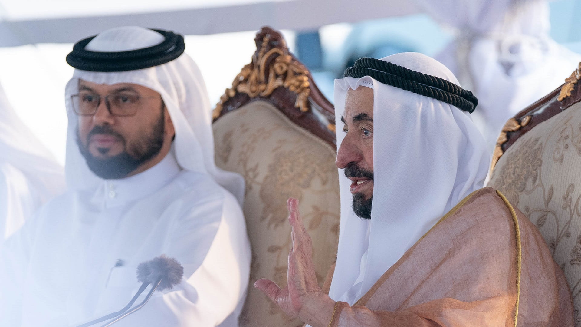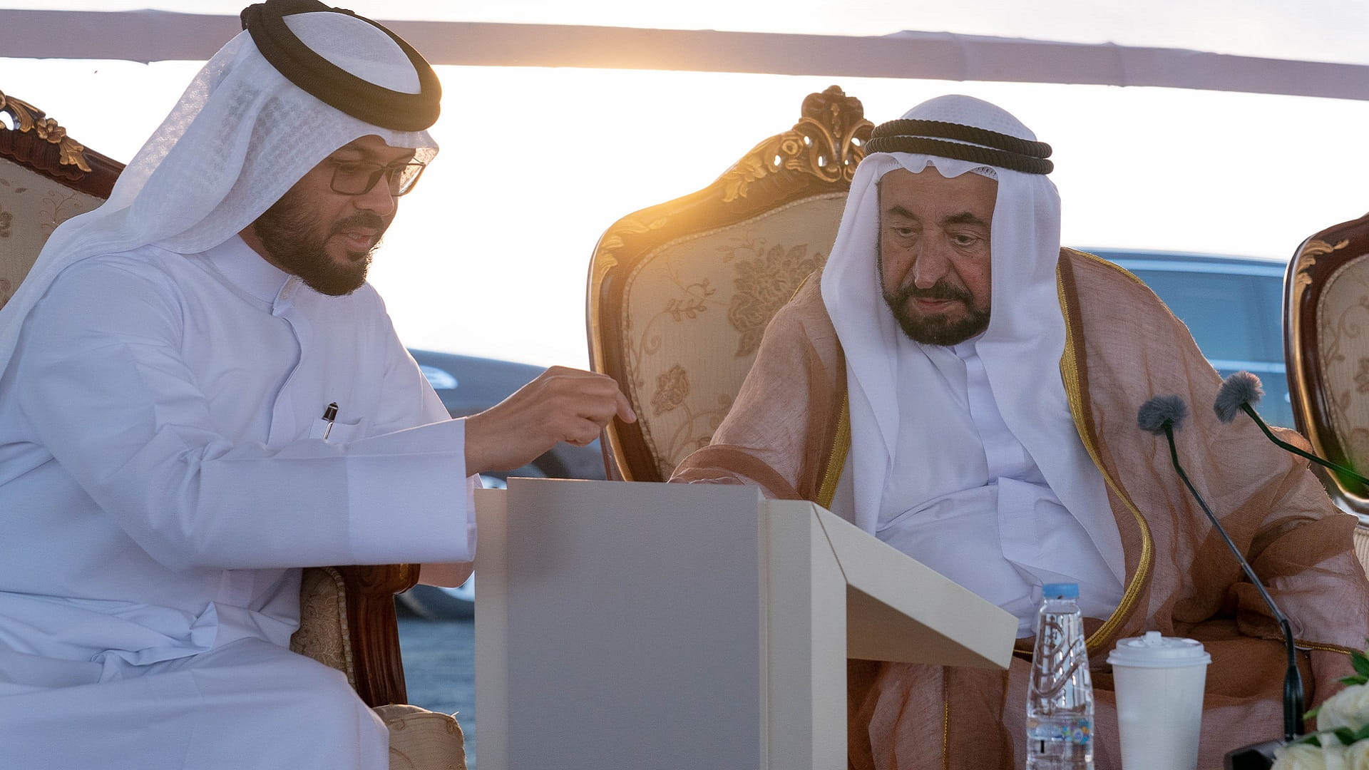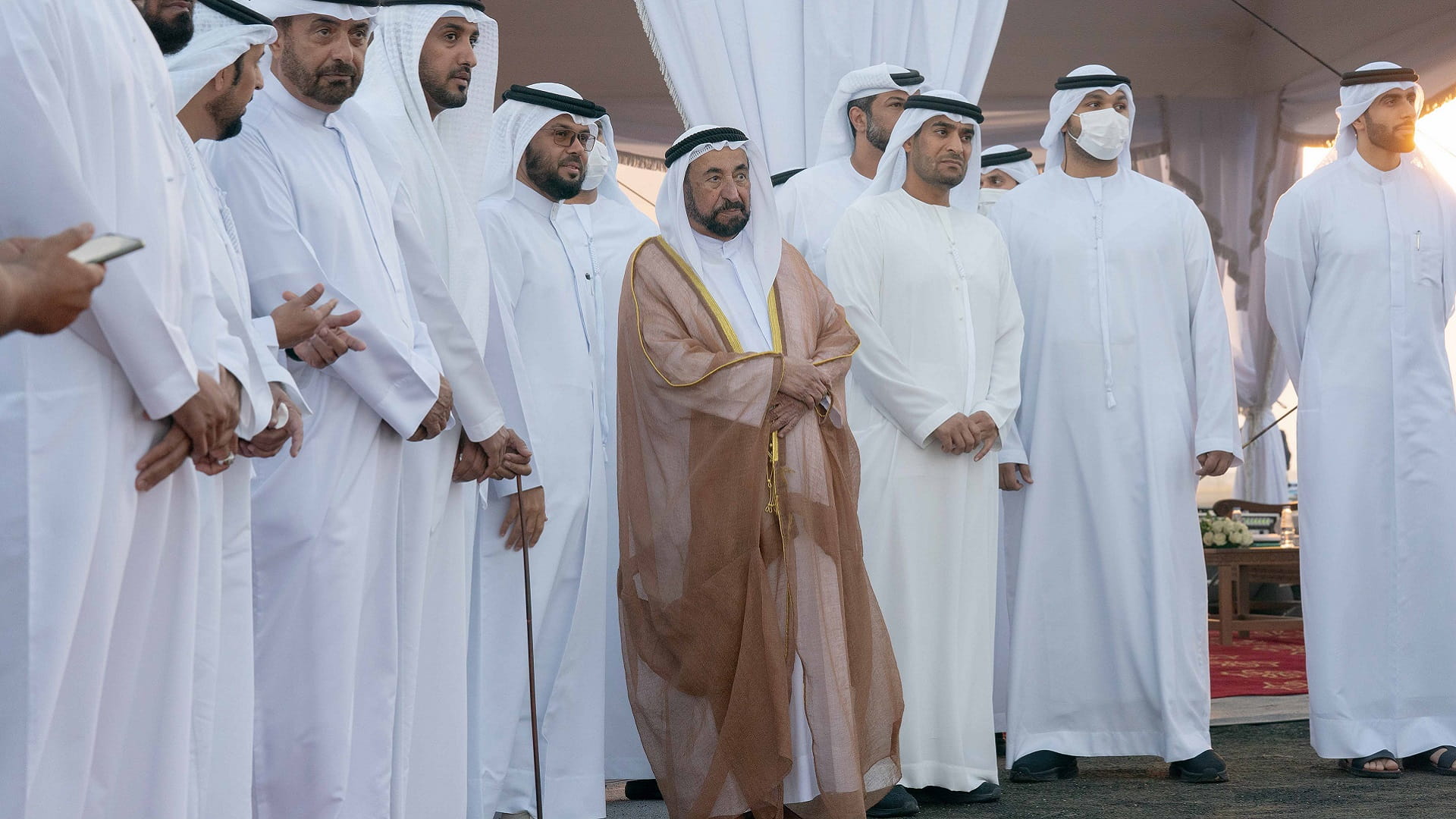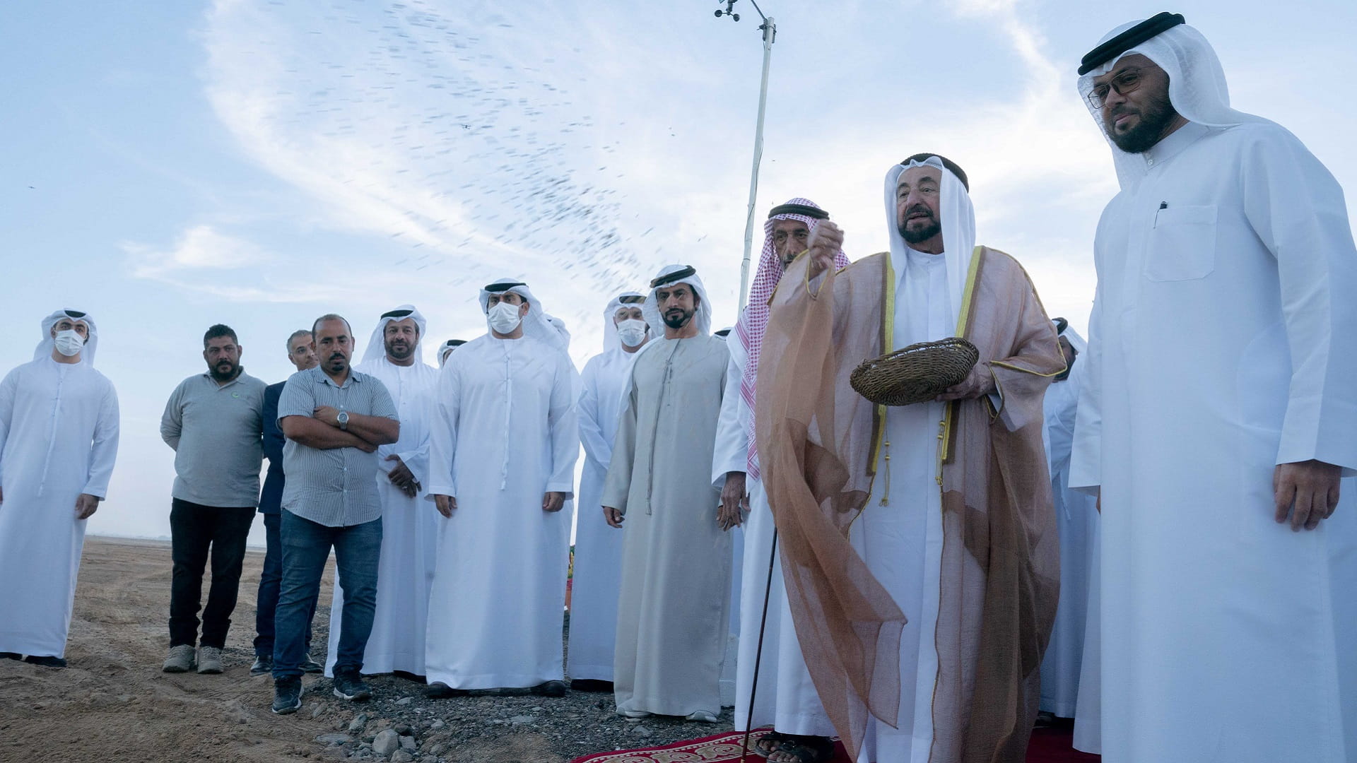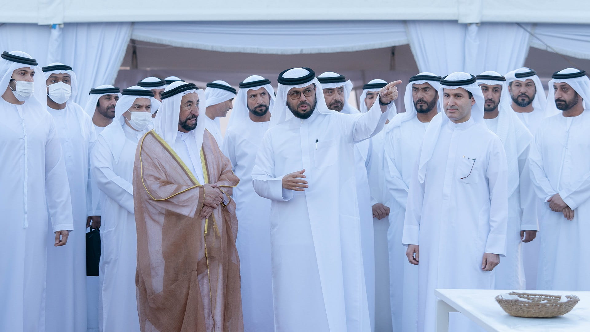 His Highness was accompanied by Dr. Eng. Khalifa Musabah Al Tunaiji led a delegation from the Department of Agriculture and Livestock Resources; Dr. Suleiman Sarhan Al Zaabi, Head of the Municipal Affairs Department; Mohammed Obaid Al Zaabi, Head of the Protocol and Hospitality Department; Saeed Sultan Al Suwaidi, Head of the Sharjah Electricity, Water and Gas Authority; and a number of heads of municipal councils and directors Municipalities and notables of the central region.