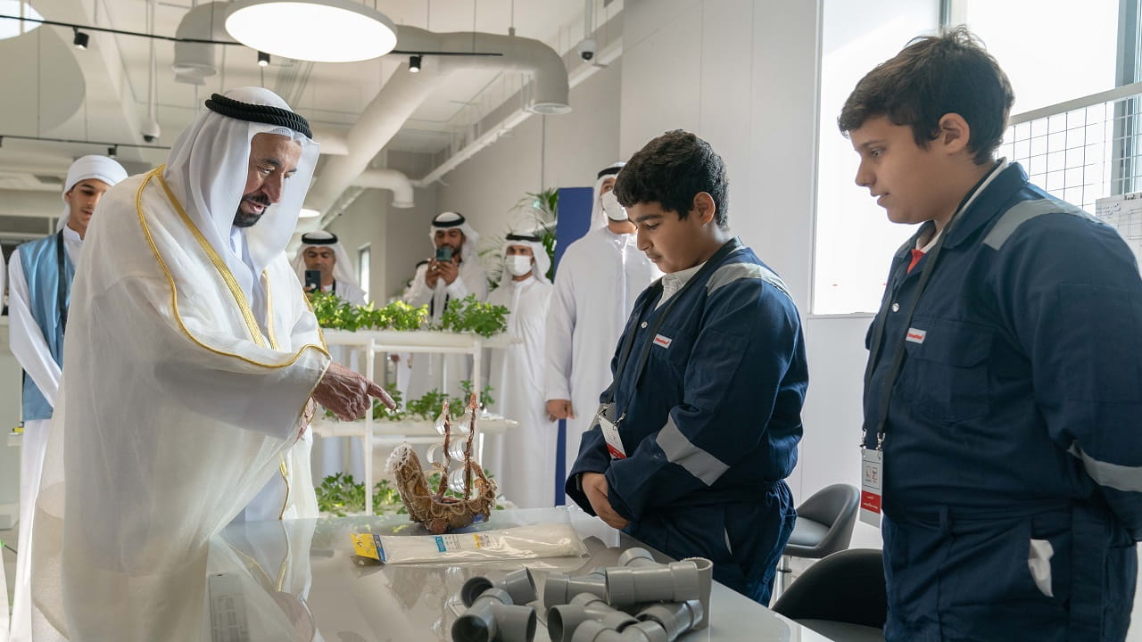 His Highness the Ruler of Sharjah stressed the importance of research in developing science and skills for young people and contributing to the discovery of all that is new in science, knowledge and technology, pointing to the many inventions and scientific research that are registered in Sharjah, calling on affiliates of youth to visit the laboratories of the University of Sharjah and the American University of Sharjah to learn about modern and accurate facilities that contribute to conducting research and discovering impressive scientific results.