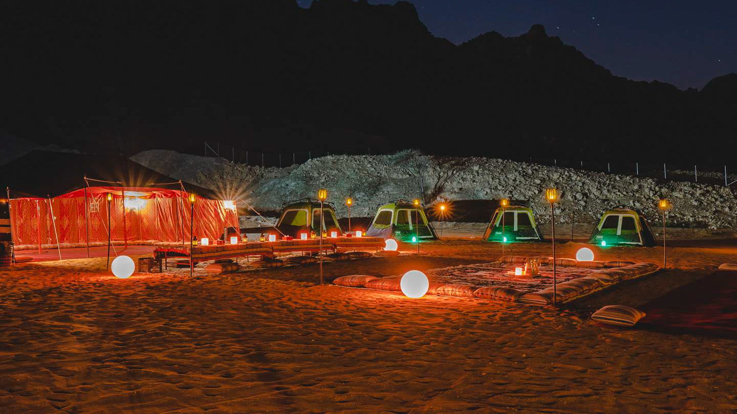 After enjoying a delicious buffet dinner and shows, the guests will be able to spend the night at the magical deserts of mleiha in the specially set up camps with bonfires.