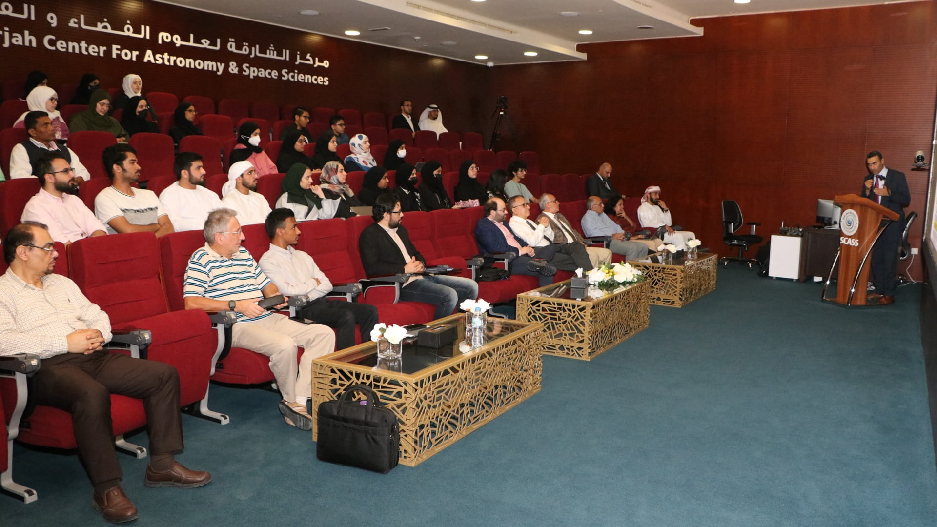 In addition, Dr. Antonios Manousakis, Assistant Professor of Astrophysics, UOS, discussed preparations of astronomical observations. Eng. Razan S. Alkaabi, a Master student in M.Sc. in Astronomy and Space Sciences delivered a presentation on “Stellar Clusters”. Dr. Randa Asad, Associate Professor of Astrophysics, American University of Sharjah (AUS), compared results from CMDs to results from integrated spectra of star clusters, while Mr. Ammar Eissa, Research Assistant, SAASST, talked about the stars formation and highlighted the evolution in and off Hertzsprung-Russell (HR) diagram.