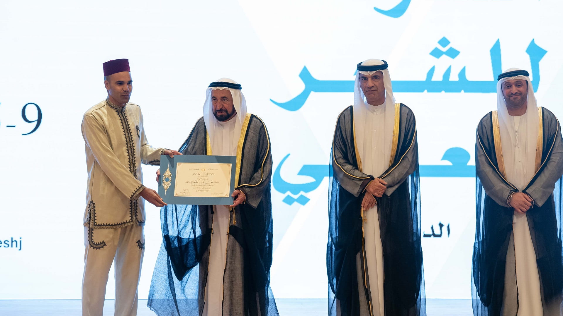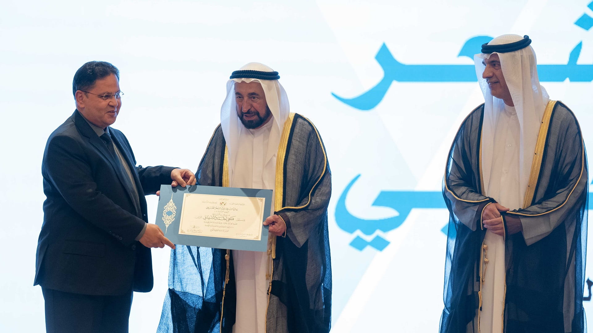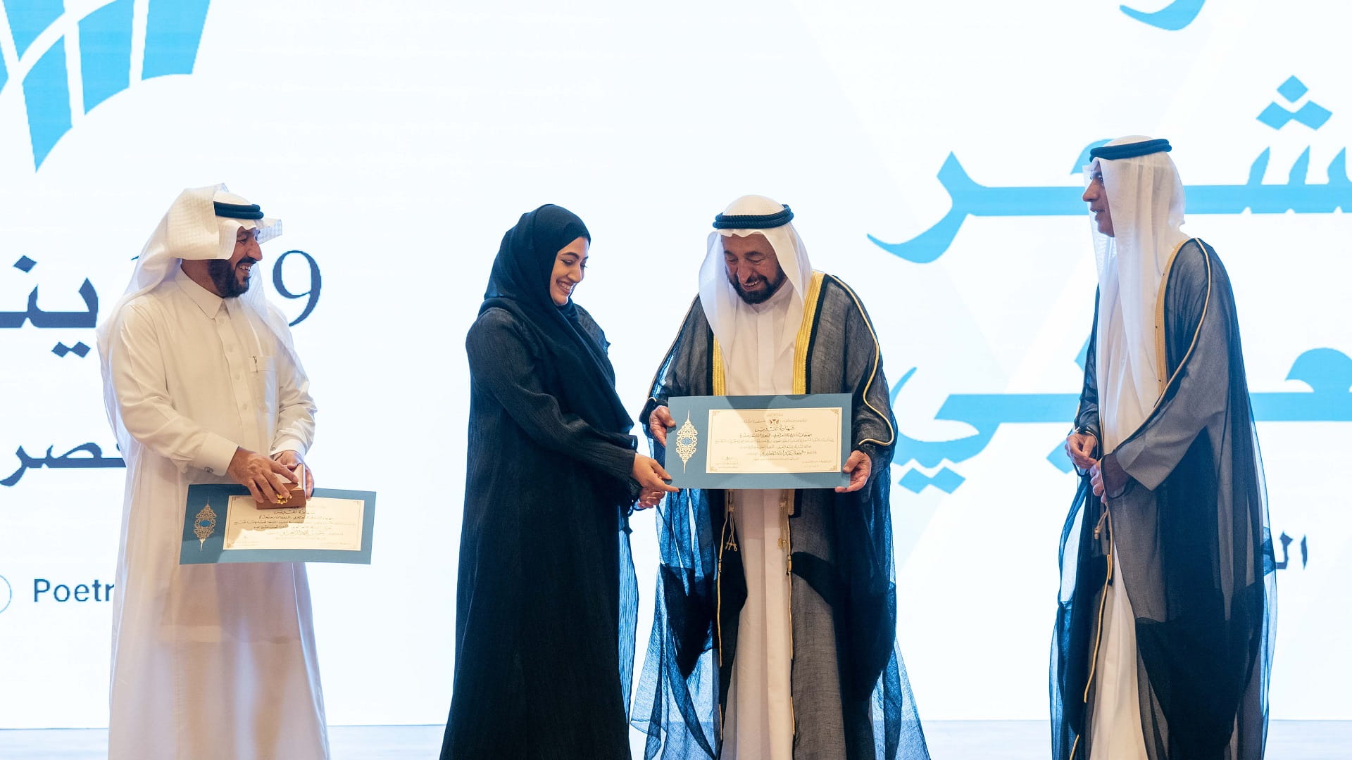 The 11th Sharjah Award for Arabic Poetry winners, Sheikha Abdullah Al-Mutairi of the United Arab Emirates, and Hassan Al-Zahrani of Saudi Arabia, were then honoured by His Highness the Ruler of Sharjah.