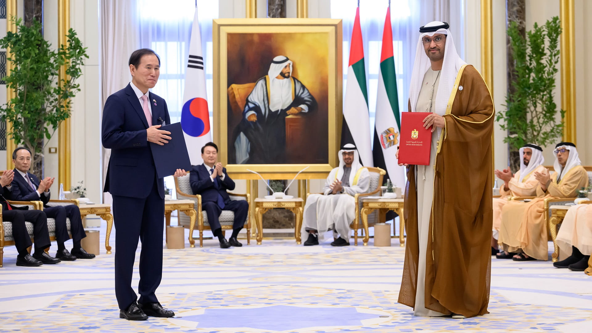 He was accompanied by Suhail bin Mohammed Al Mazrouei, Minister of Energy and Infrastructure; Noura bint Mohammed Al Kaabi, Minister of Culture and Youth; Abdulla Al Nuaimi, Ambassador of the United Arab Emirates to the Republic of Korea, and a number of top officials in Korea, as part of his official visit to the country.