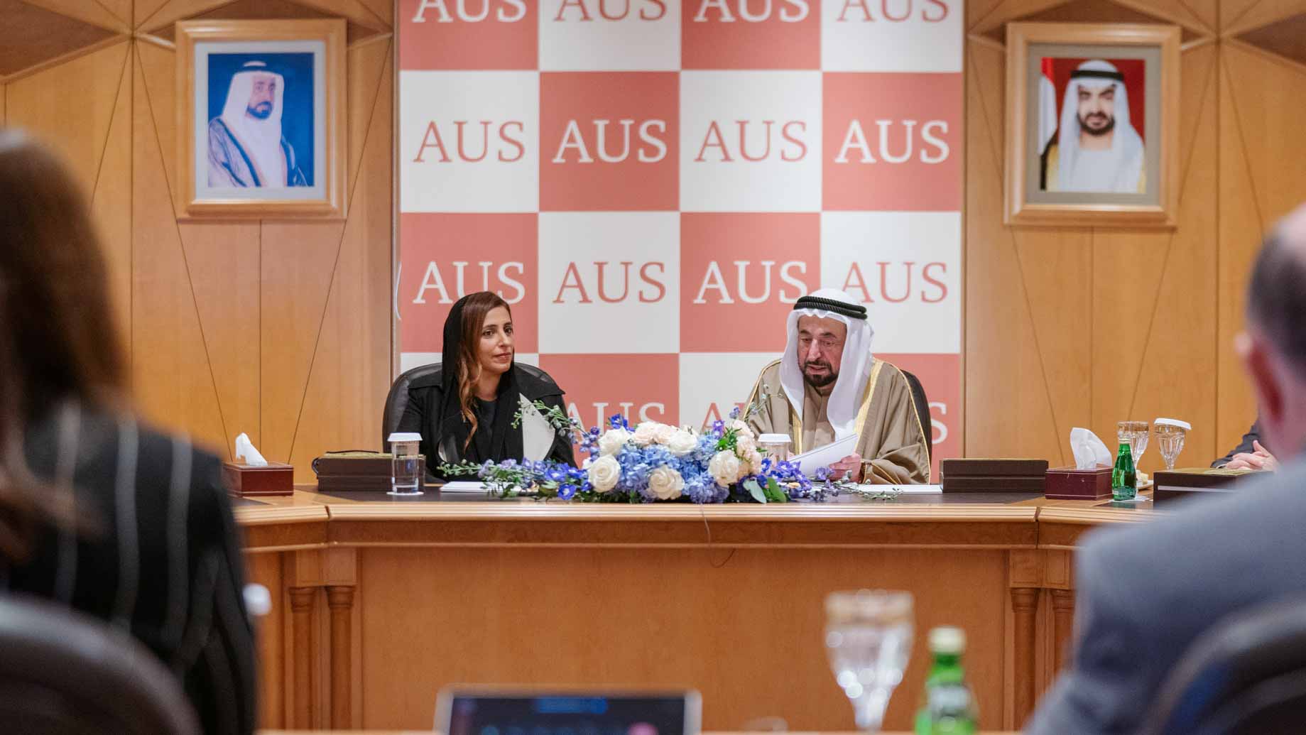 On the sidelines of the Board of Trustees meeting, His Highness the Ruler of Sharjah unveiled the "Donor Honoring Wall", which honors the most donors and personalities in supporting the university's educational journey.