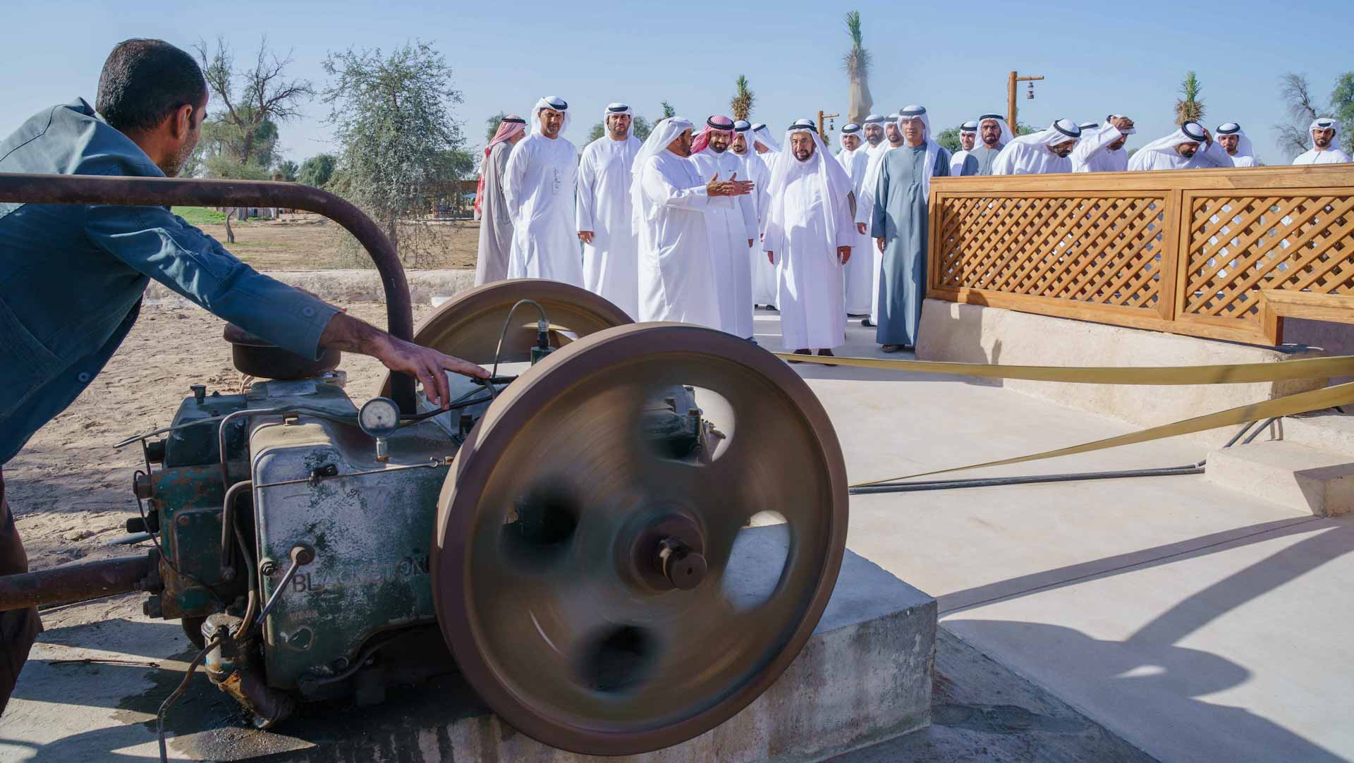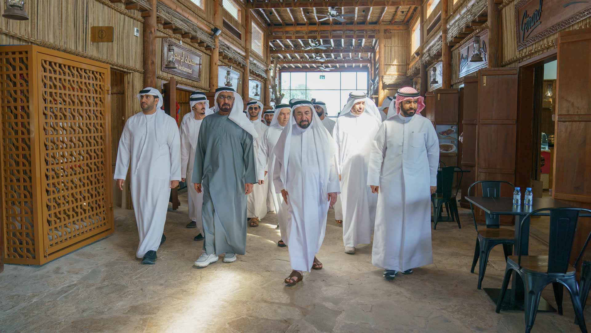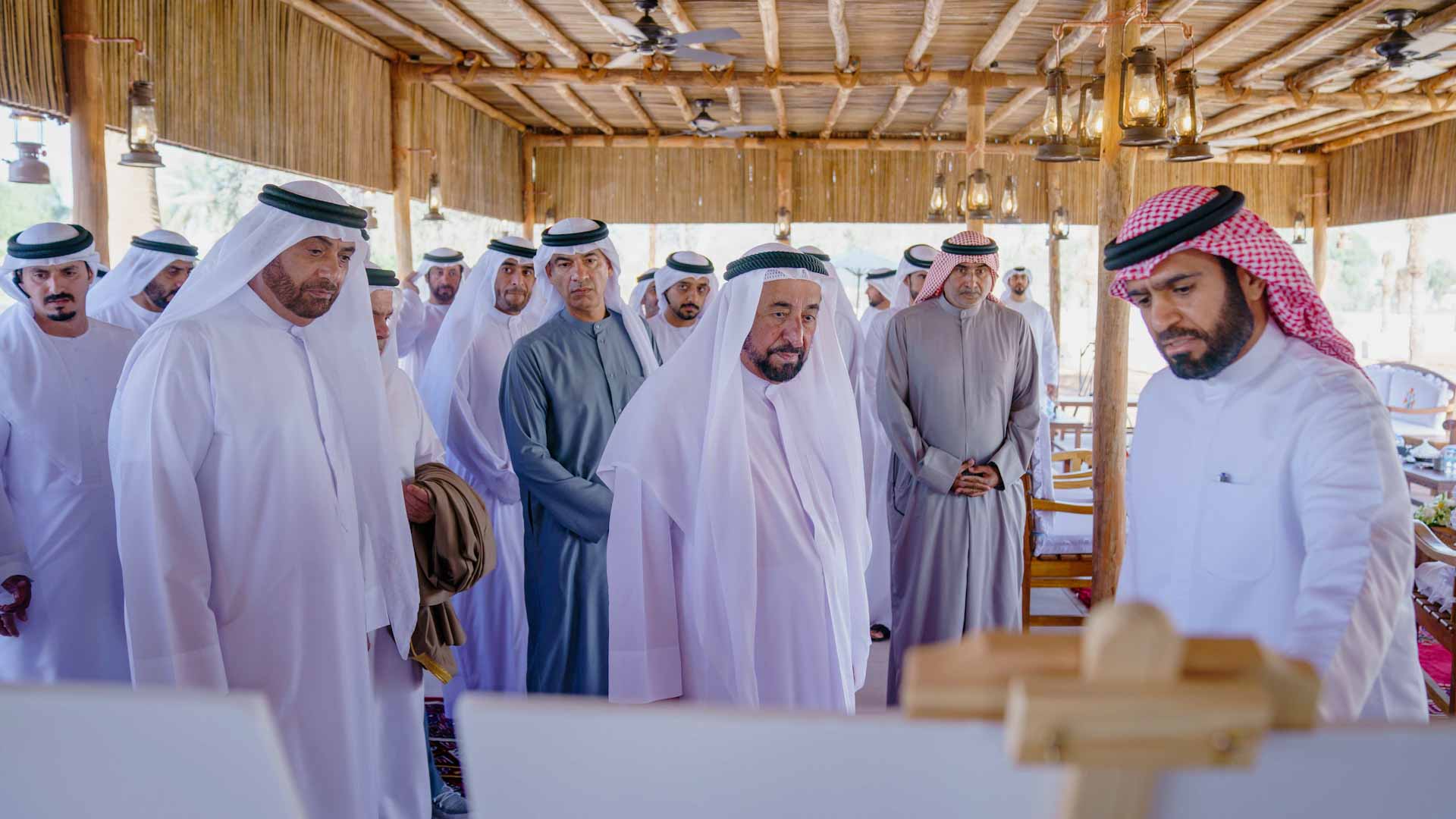His Highness was accompanied by: His Excellency Abdullah bin Muhair Al Ketbi, Minister of the Federal Supreme Council Affairs, Abdullah bin Mohammed Al Owais, Chairman of the Department of Culture, Dr. Khalifa Musabah Al Tunaiji, Chairman of the Department of Agriculture and Livestock, Engineer Salah bin Butti Al Muhairi, Head of the Initiatives Implementation Authority (Mubadara), Dr. Mohammed Obaid Al Zaabi, Head of the Protocol and Hospitality Department, and a number of senior officials and dignitaries of the region.