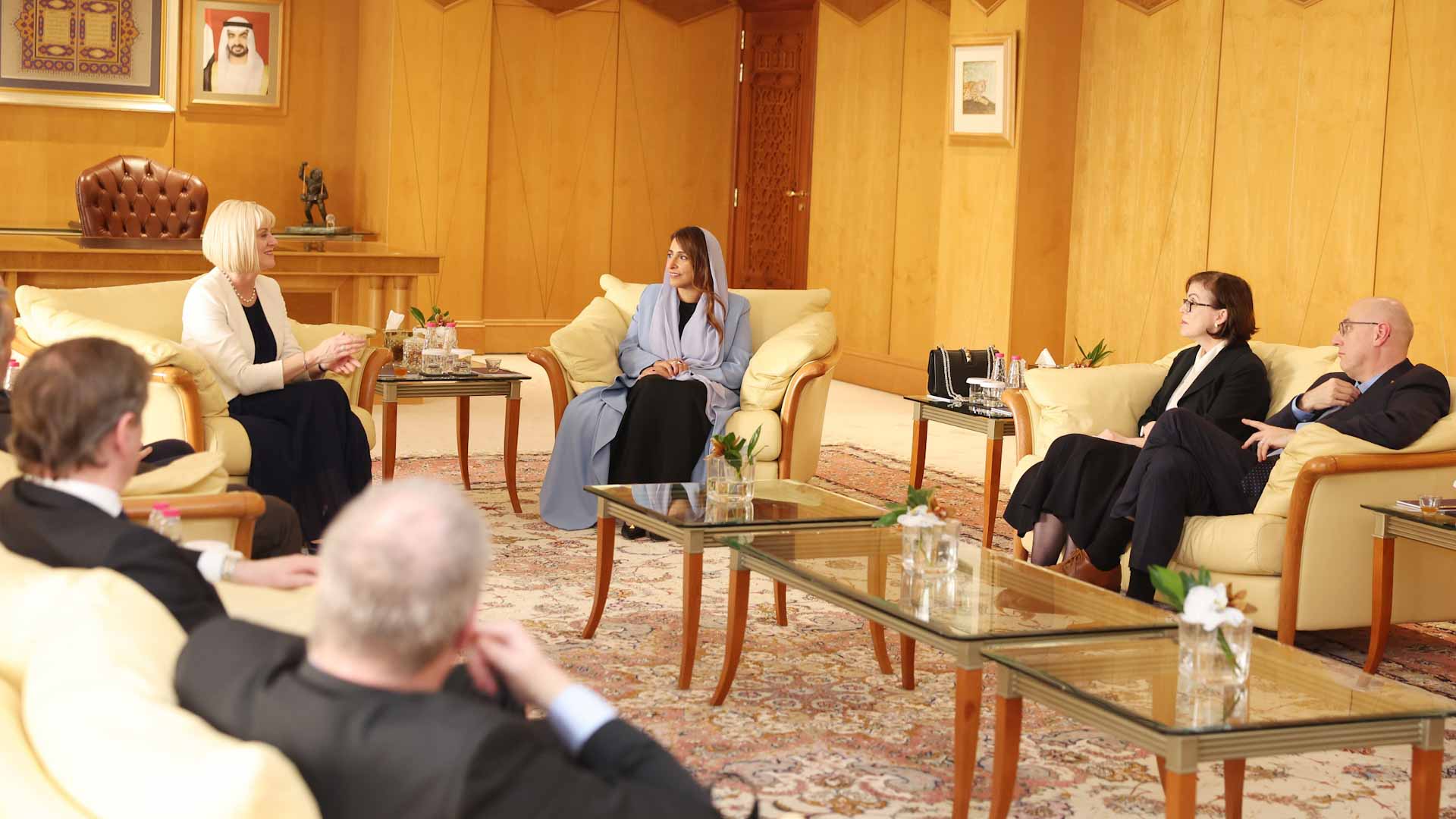 The delegation was led by the newly appointed Vice-Chancellor of the University of Exeter, Professor Lisa Roberts, and was composed of several senior leaders from the university including: Professor Richard Follett is Deputy Pro Vice Chancellor and Associate Vice President (International); Professor Gareth Stansfield, Professor of Middle East Politics, Pro-Vice-Chancellor and Executive Dean; Professor Dan Sharman, Vice Chancellor, College of Environment, Science and Economics; Dr. Sean Curtis, Director of Global Advancement; and Professor Rebecca Louise Drew, Global Partnerships Coordinator. The meeting was also attended by Dr Muhadditha Al Hashimi, Chairperson of the Sharjah Private Education Authority; AUS Chancellor, Dr. Susan Mumm; Professor John Katsos, Associate Professor of Management; and Saeed Al Shamsi, Chief of Protocol.