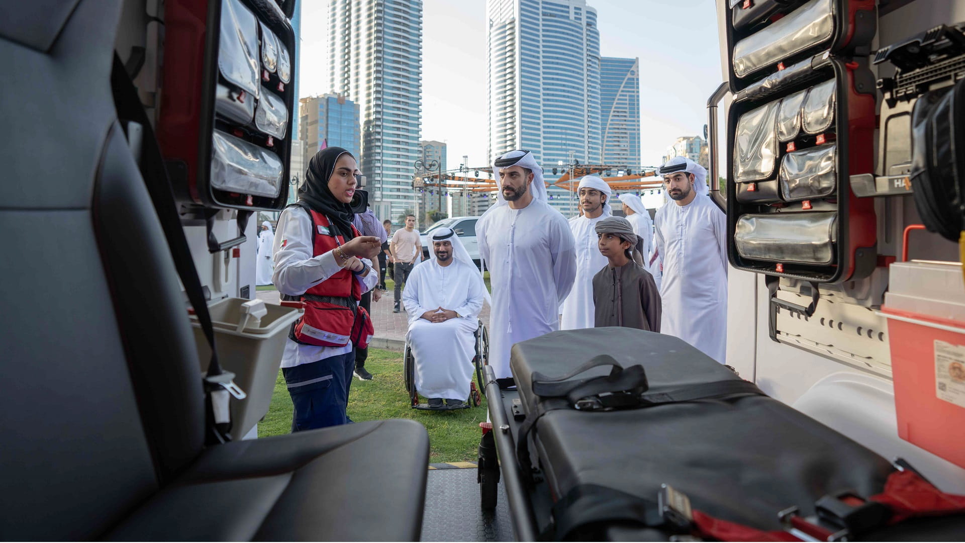 The Deputy Ruler of Sharjah listened to detailed explanations from the participants about the luxury and classic cars and motorcycles on exhibit, their dates of production, the best features that characterise them. He was also detailed about the specialised cars, such as ambulances, civil defence cars, and automatic responders of various types and equipment that serve important government sectors, fast racing cars, and others.