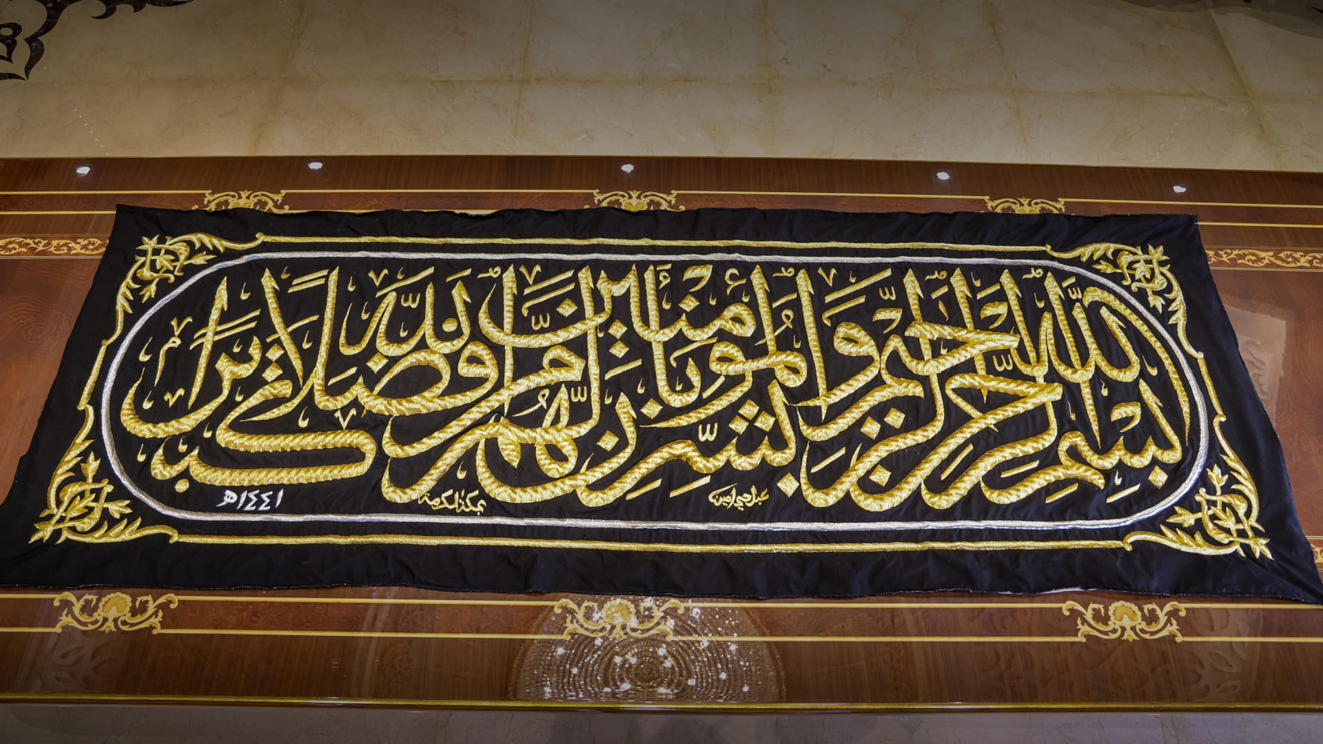 Its location is on the opposite side of the door of the Kaaba, where it had two doors; one of them is the door of Ibrahim, which was later closed. The gifted piece was placed in the now-closed door.