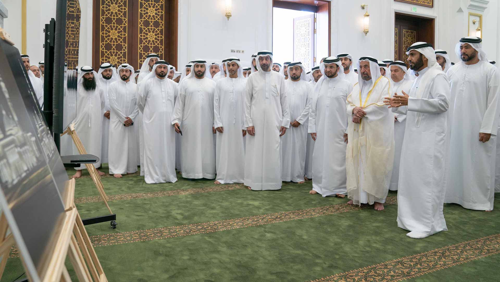 His Highness the Ruler of Sharjah was briefed during a detailed explanation about the mosque’s construction specifications and its various facilities and services available for worshipers. His Highness reviewed the new mosque’s aesthetic Islamic architecture designs.