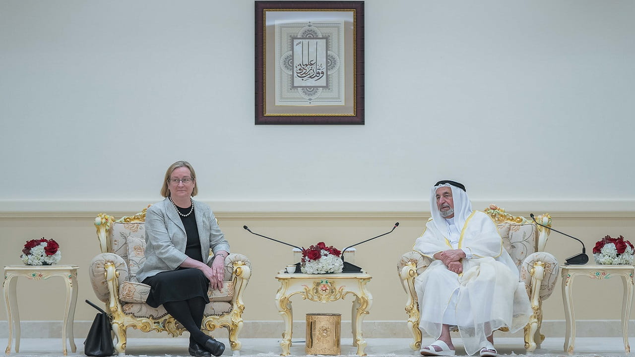 At the end of the signing, His Highness the Ruler of Sharjah received a souvenir from the University of Bristol delegation.