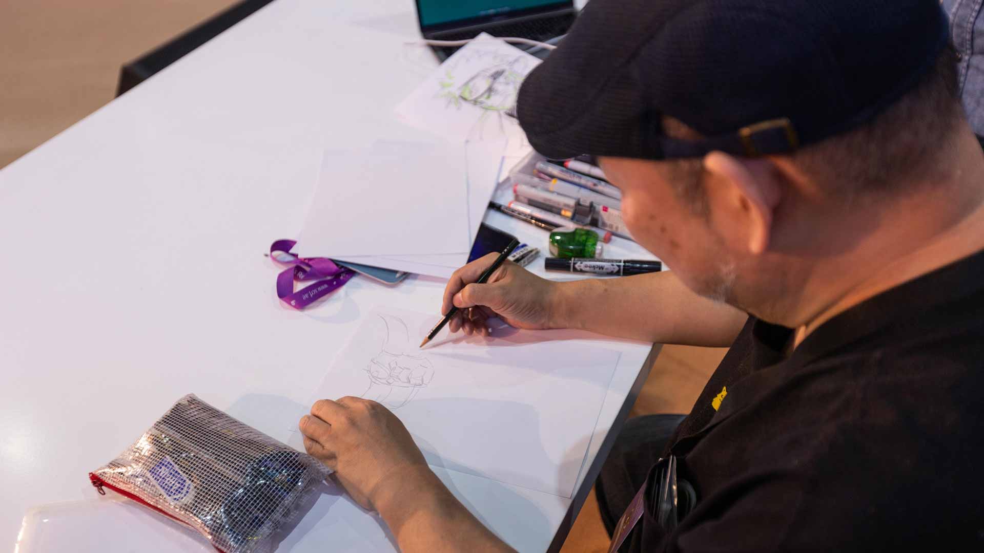 Drawing various shapes and sizes with a pencil on paper, Yokota, who debuted as a character designer on Louie the Rune Soldier, and then drew original character designs for acclaimed series like Magical Kanan and Angelium, also helped the crowd discover little-known secrets behind creating compelling anime-style heroes of different genres.