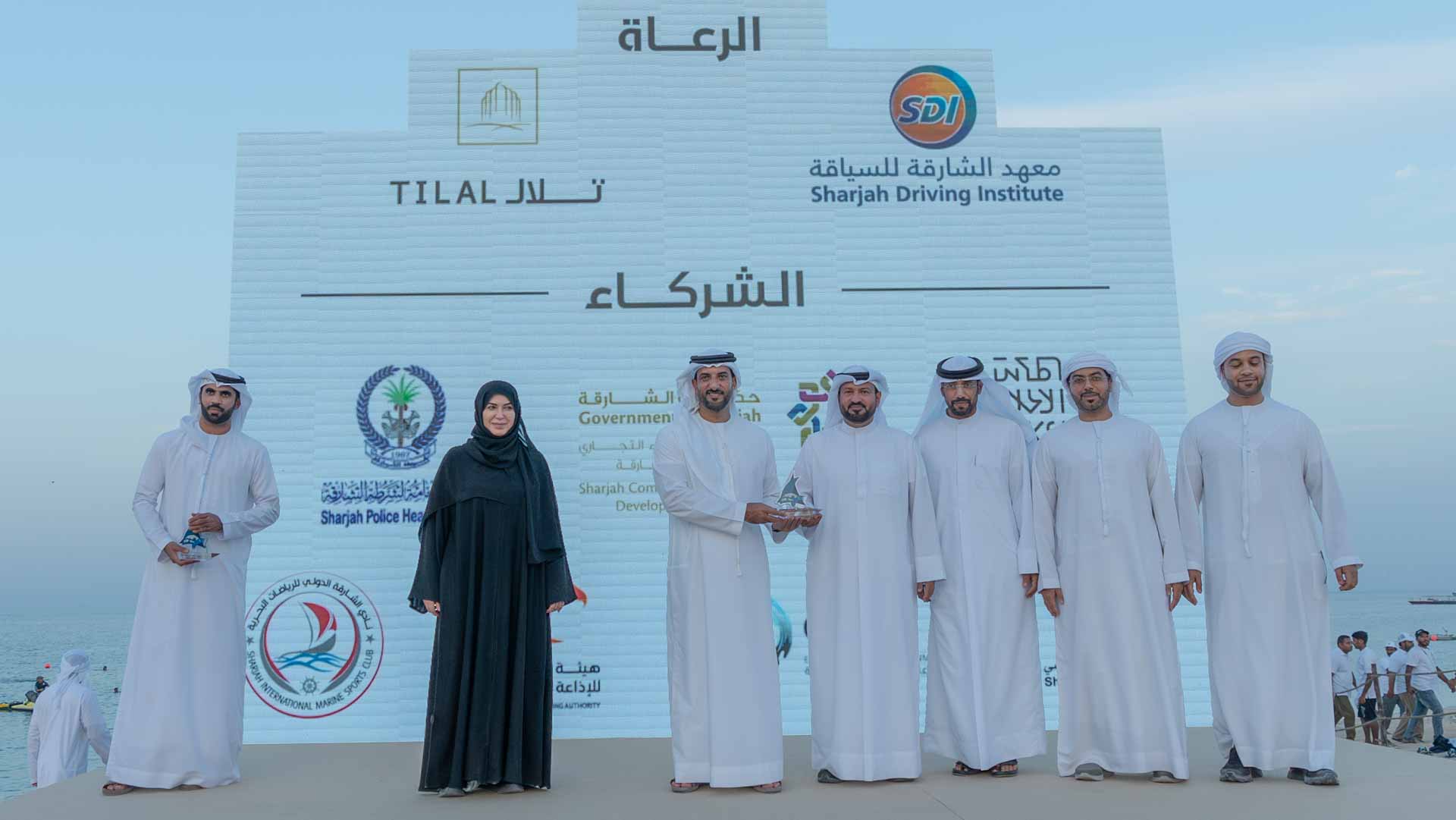He honoured the sponsoring entities of the festival, including the Sharjah Commerce and Tourism Development Authority, the Sharjah Police, Sharjah Broadcasting Authority, the Sharjah Government Media Bureau, Sharjah International Marine Sports Club, Sharjah Sports Council, Tilal Properties, Sharjah Institute for Driving, and Emirates Marine Environmental Group. He presented them with shields as a token of appreciation and took commemorative photos with them.