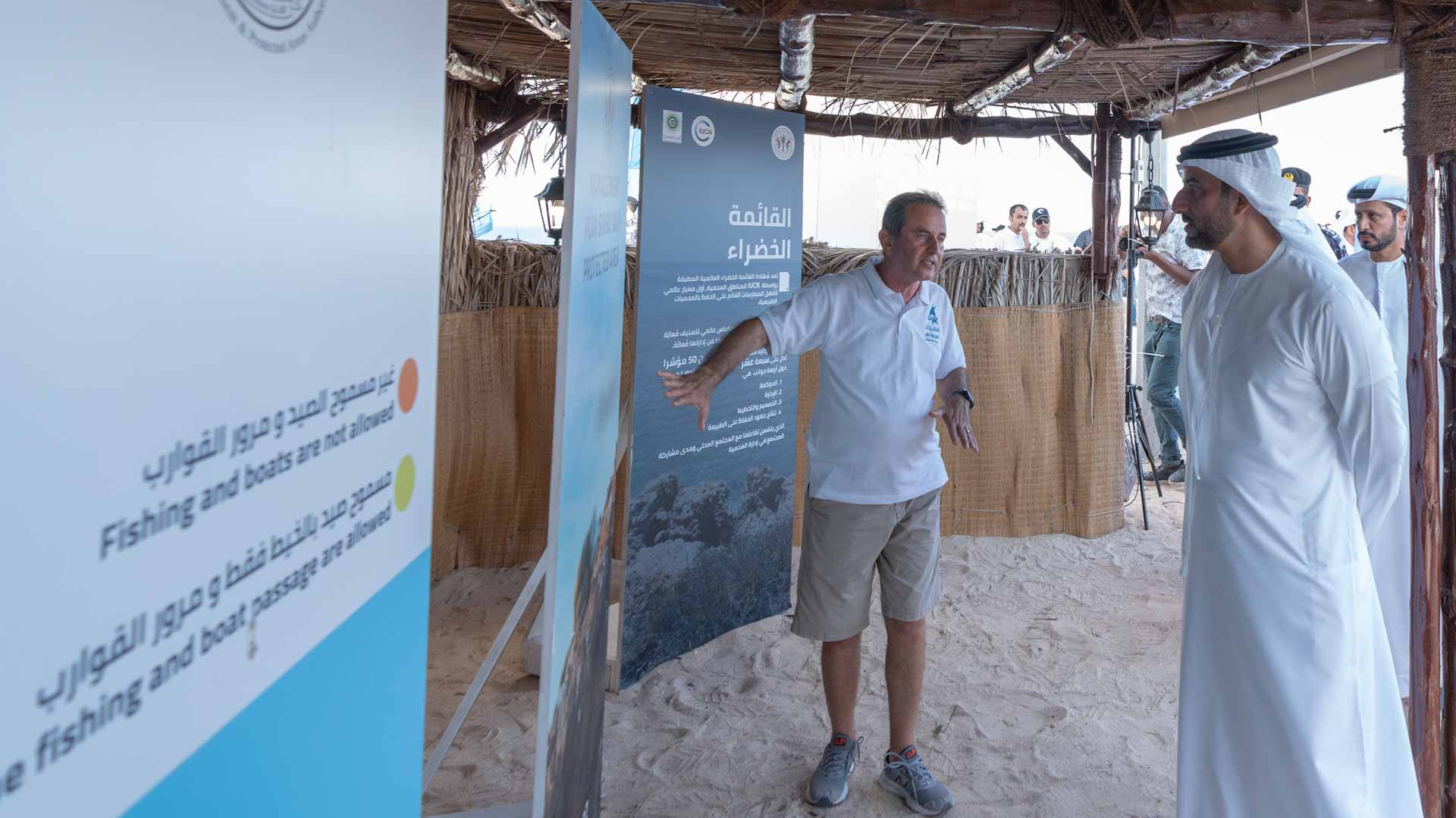 During the event, Sheikh Sultan also visited the accompanying exhibition, learning about its crafts and other marine-related topics. He attentively listened to the participating entities' presentations about their diverse activities that highlight their efforts in biodiversity conservation. Additionally, he learned about the historical evidence concerning Sir Bu Nair Island and its natural environmental elements.
