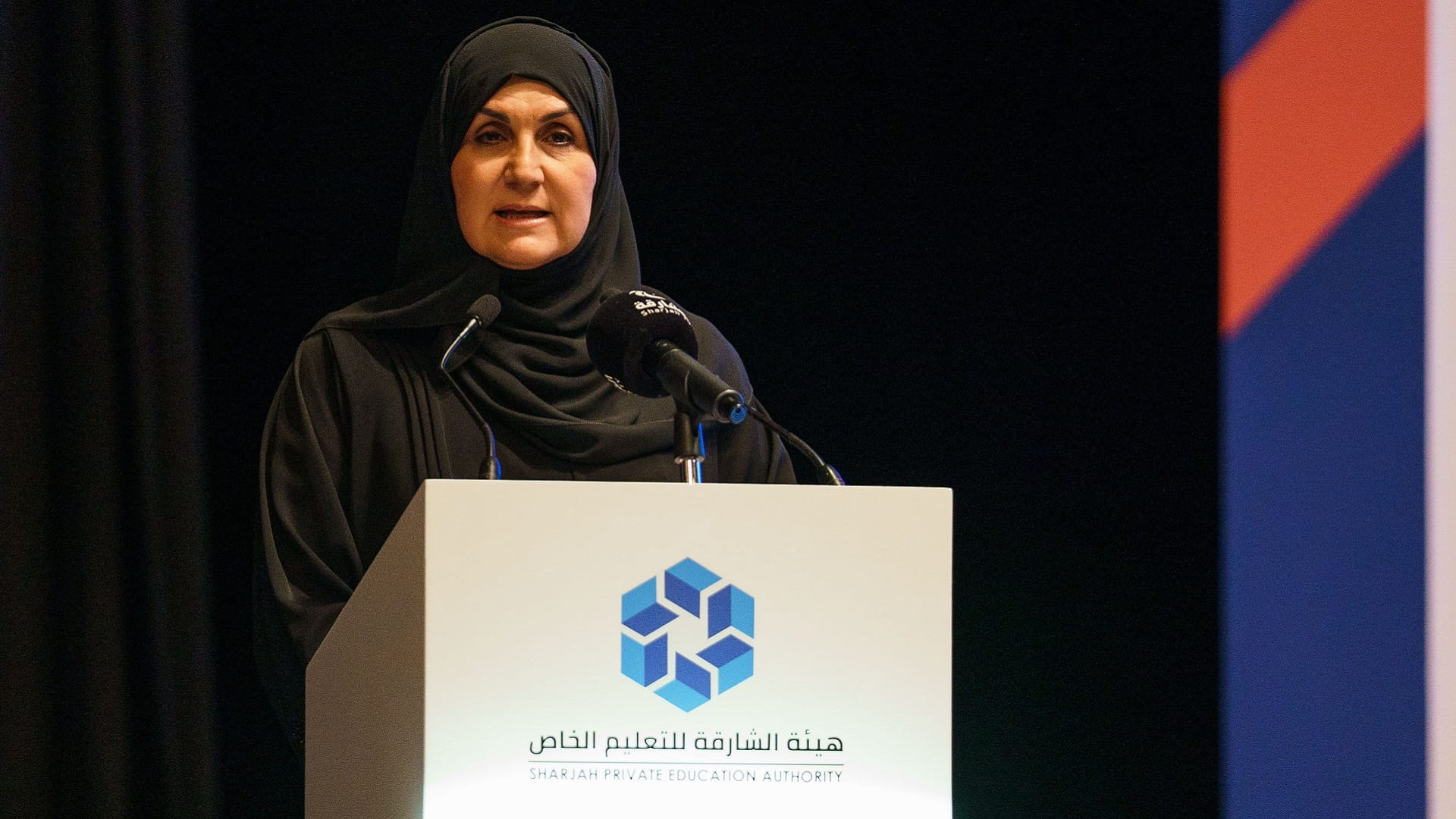 Dr. Muhadithah Al Hashemi, Chairperson of the SPEA, explained during her speech what His Highness Sheikh Sultan bin Mohammed Al Qasimi, Supreme Council Member and Ruler of Sharjah, went to in representing and explaining the teaching and learning process, which was the curriculum that the Authority worked on to ensure success and quality education.