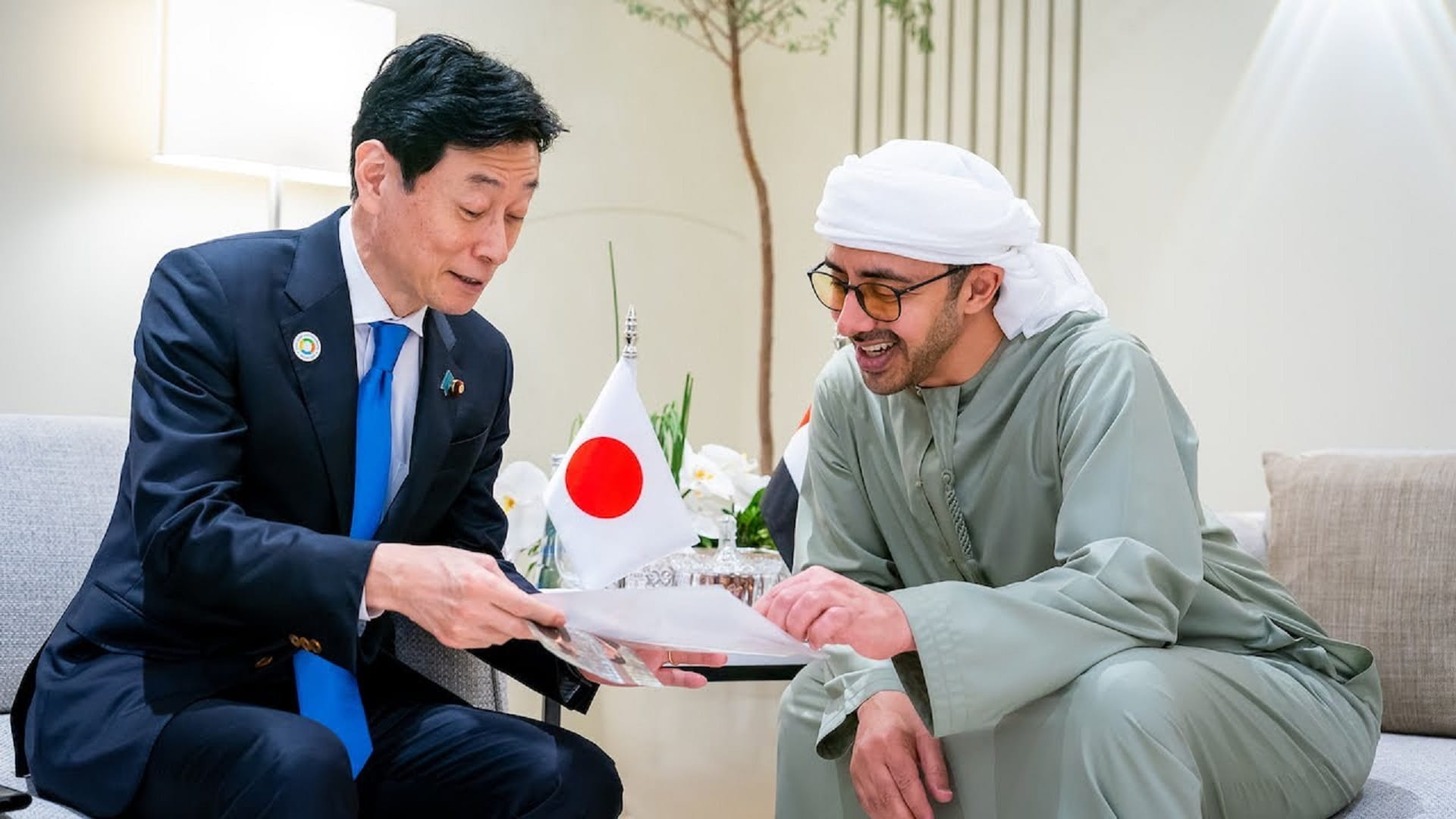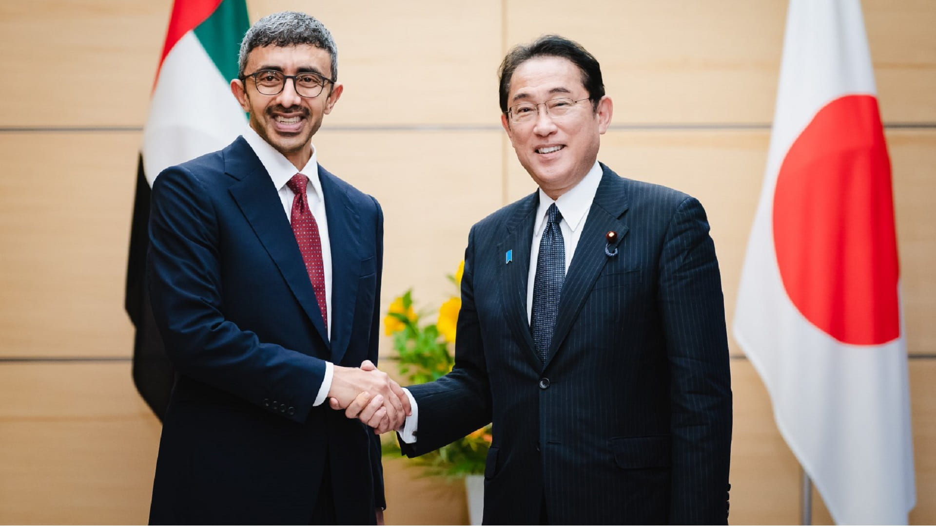 Sharjah24 - WAM: Sheikh Abdullah bin Zayed Al Nahyan, Minister of Foreign Affairs, has discussed with Yasutoshi Nishimura, Japan's Minister of Economy, Trade and Industry, means of developing joint cooperation and strategic partnership between the UAE and Japan as part of both countries efforts to achieve sustainable economic growth.