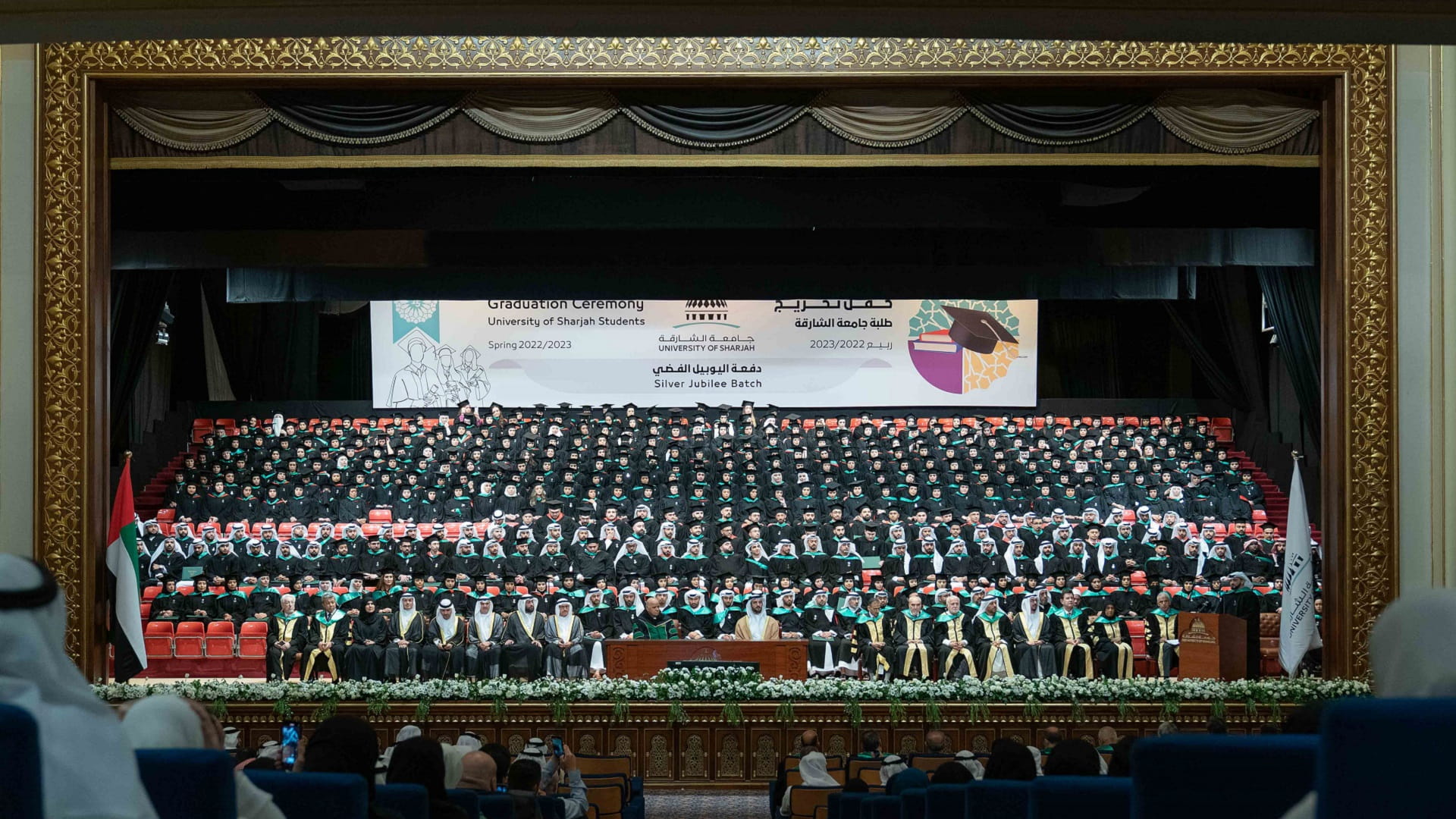 “I stand among you today at the first graduation ceremonies of this year, to close a bright chapter in the history of the University of Sharjah, crossing the Silver Jubilee with you, as you have concluded 25 years of continuous achievement, and let us start today by writing with the birth of a new era that keeps pace with the rapid development of science and technology in the globe, in light of The dominance of artificial intelligence. We will not stand idly by, but we pledge to you to be in the ranks of developed nations, in the implementation of the visions of His Highness Sheikh Dr. Sultan bin Mohammed Al Qasimi, Supreme Council Member and Ruler of Sharjah, and founder of the University of Sharjah,” Sheikh Sultan bin Ahmed said.