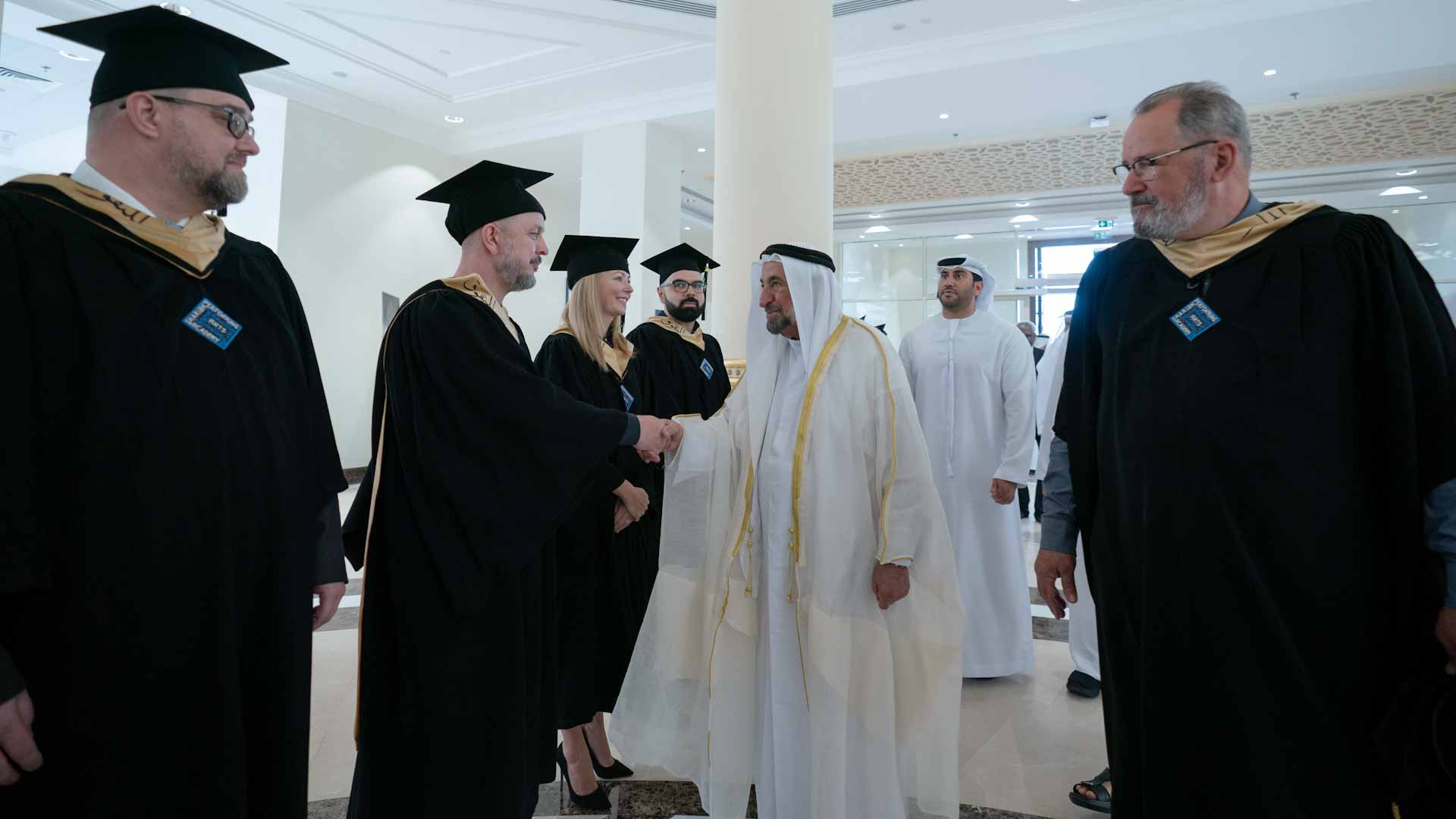 During the ceremony, the graduates performed a song dedicated to His Highness the Ruler of Sharjah, expressing their thanks for all forms of support and care provided by His Highness.