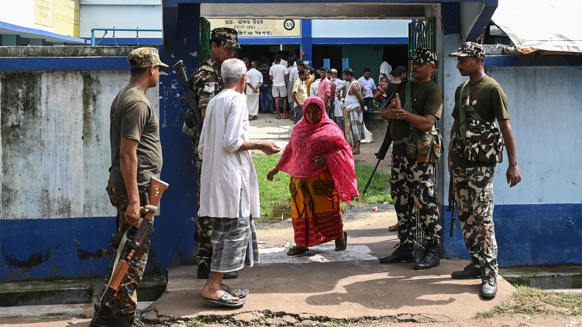 Other voting booths saw a heavy security presence with paramilitary troops standing guard to keep order.