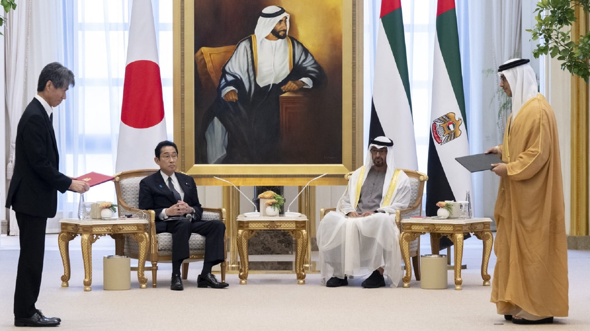 After being welcomed by His Highness Sheikh Mohamed at Qasr Al Watan in Abu Dhabi, Prime Minister Kishida was greeted by groups of children waving UAE and Japanese flags.