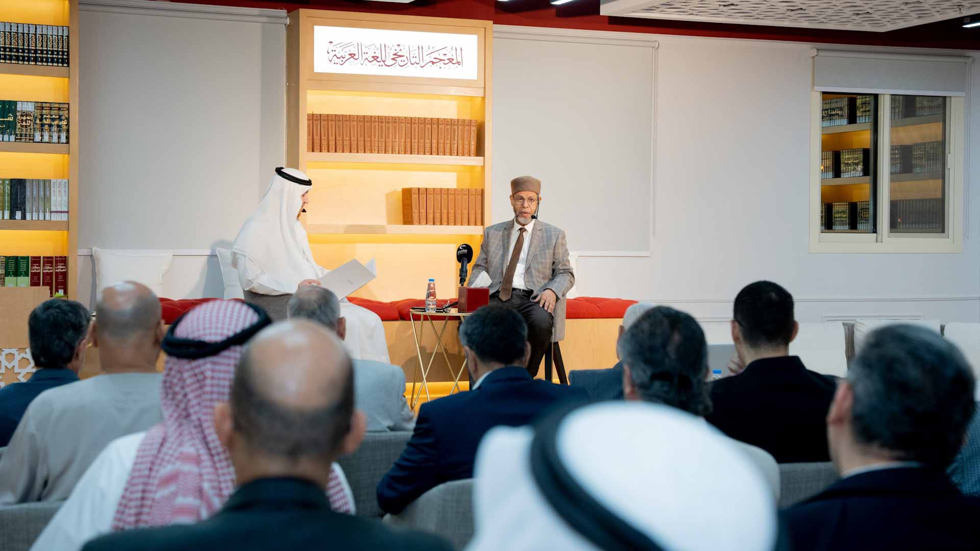 Then he went on to talk about the history of Arabic dictionaries, pointing out that Ahmad bin Faris's (Mu'jam maqayis al-lugha) is the best dictionary for looking up the origins of Arabic terms.