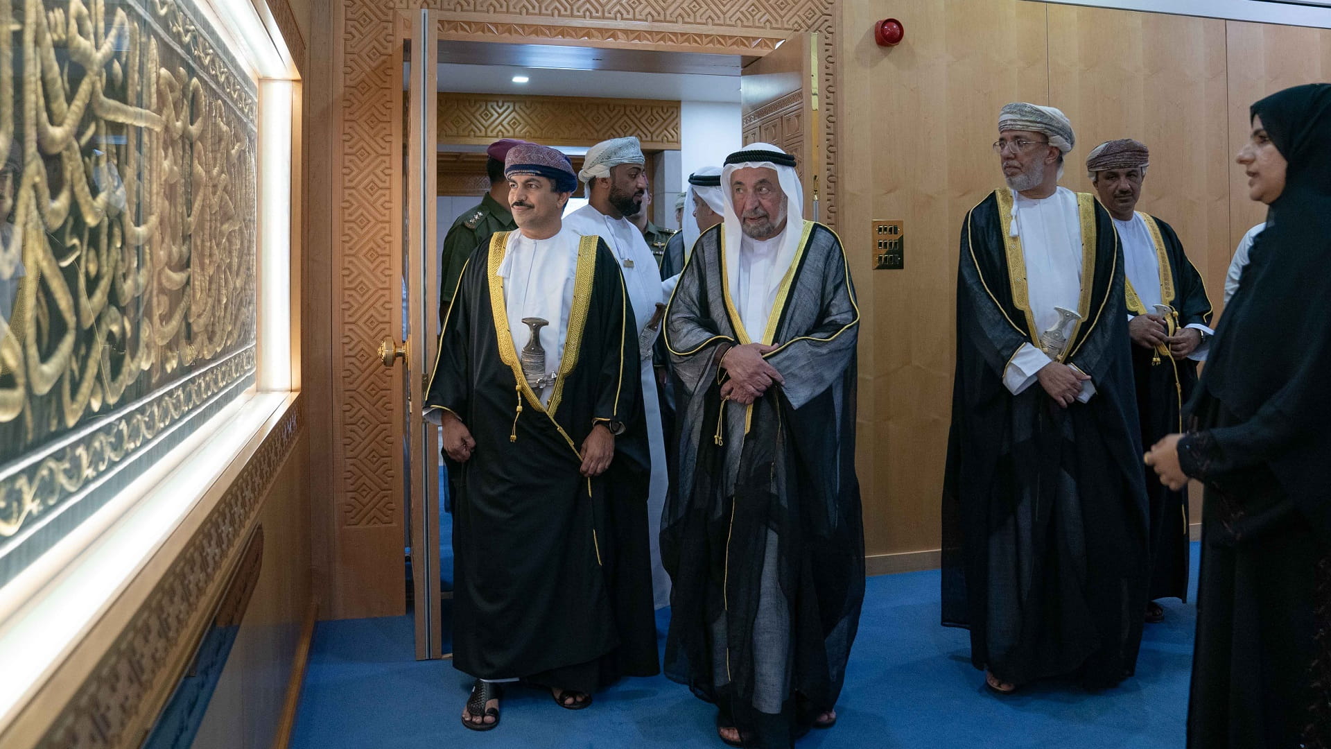 During the visit, His Highness the Ruler of Sharjah and Sheikh Sultan bin Ahmed bin Sultan Al Qasimi were accompanied by His Excellency Dr. Abdullah bin Nasser Al Harrasi, Omani Minister of Information; His Excellency Mohammed bin Nakhira Al Dhaheri, the UAE Ambassador to the Sultanate of Oman; His Excellency Abdullah Al Owais, Head of the Department of Culture, and His Excellency Mohammed Obaid Al Zaabi, Chairman of Protocol Department.