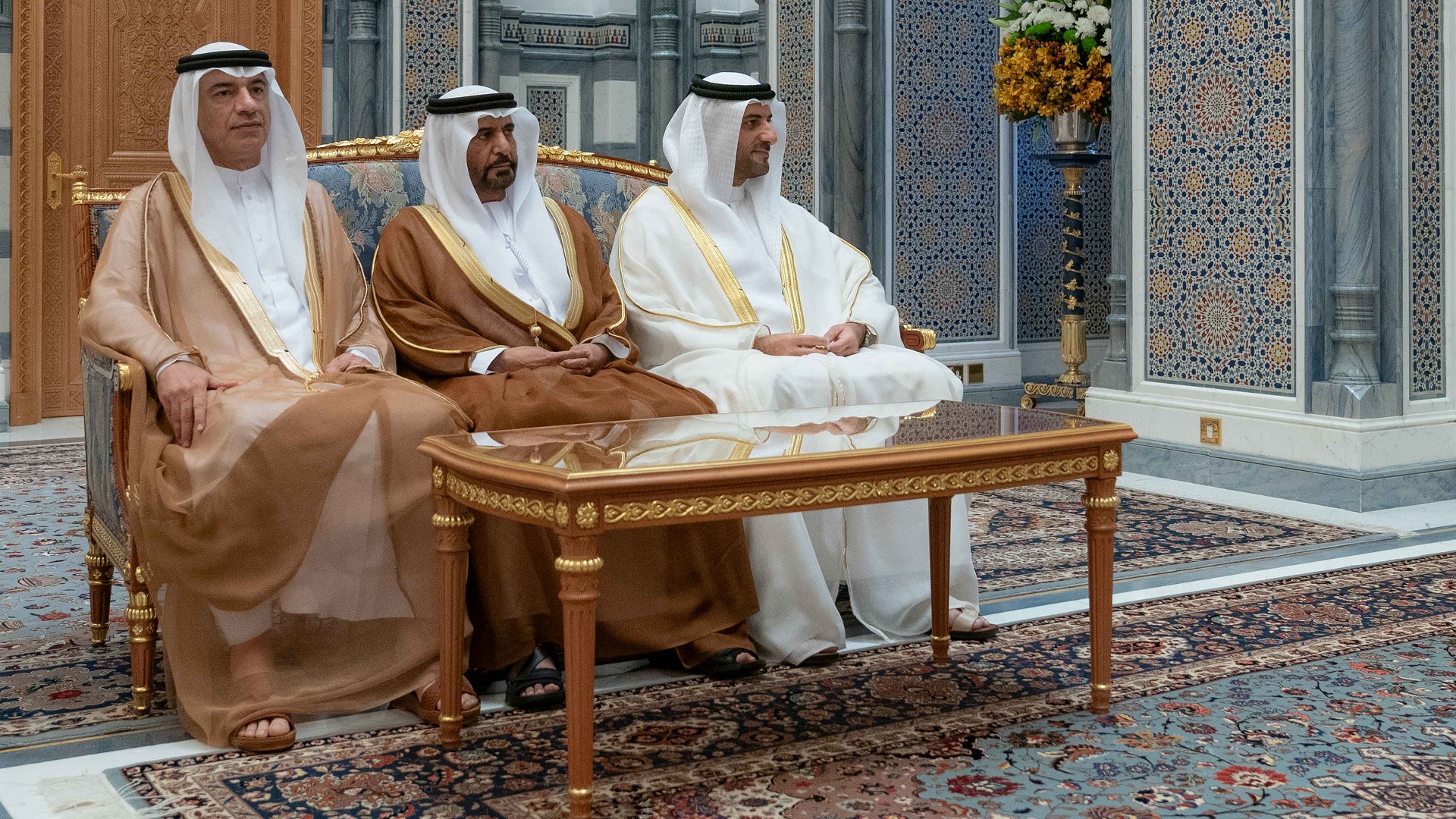 His Highness the Ruler of Sharjah conveyed the greetings of President His Highness Sheikh Mohamed bin Zayed Al Nahyan, to His Majesty Sultan Haitham bin Tariq, Sultan of Oman, and his wishes for the Sultanate and the Omani people for further progress and prosperity.