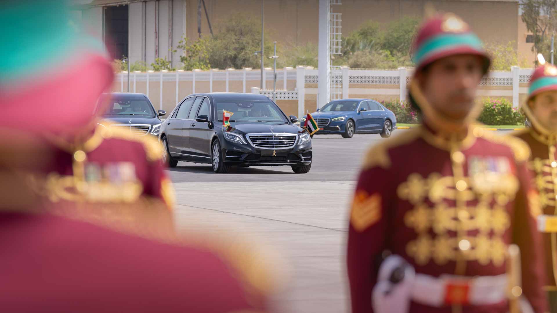 Khalid bin Hilal Al Busaidi, Minister of Diwan of Royal Court; His Excellency Dr. Abdullah Nasser Al-Harrasi, the Omani Minister of Information; His Excellency Mohammed bin Nakhira Al Dhaheri, the UAE Ambassador to the Sultanate of Oman, and a number of senior officials and members of the UAE Embassy to Sultanate of Oman bid farewell to His Highness the Ruler of Sharjah upon his departure from the Private Royal Airport.