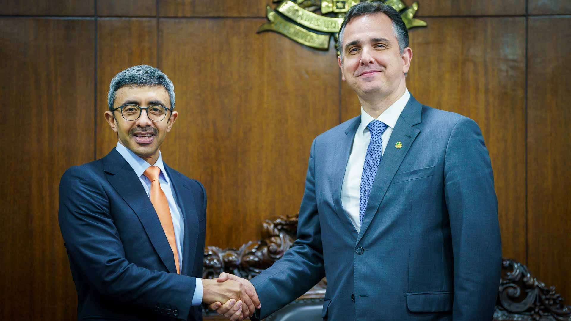 Sharjah 24 - WAM: Sheikh Abdullah bin Zayed Al Nahyan, Minister of Foreign Affairs, met with Rodrigo Pacheco, President of the Federal Senate and the National Congress of Brazil.