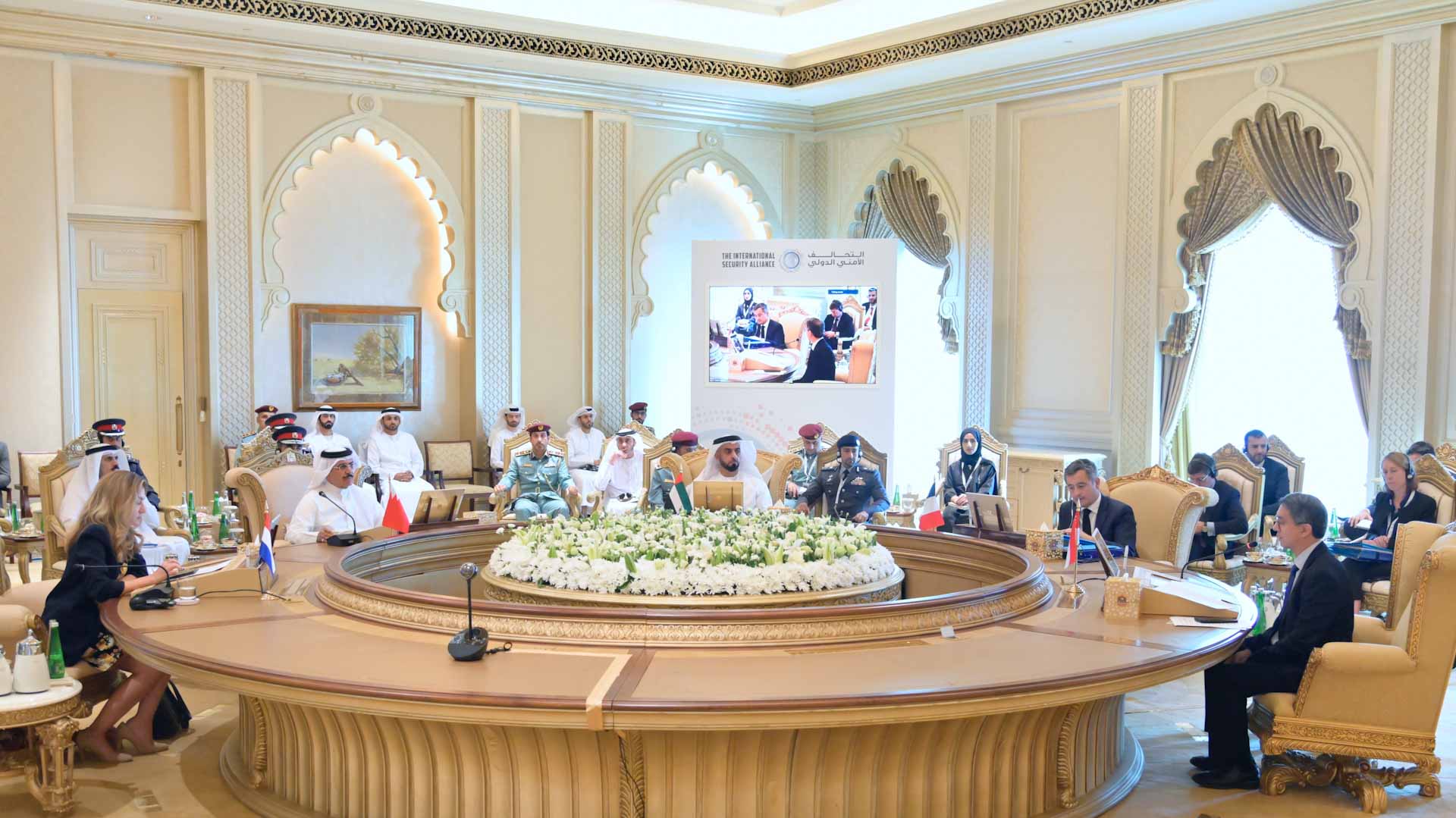 Sharjah24 - WAM: Lt. General Sheikh Saif bin Zayed Al Nahyan, Deputy Prime Minister and Minister of the Interior, chaired the Fifth Ministerial Meeting of the International Security Alliance, at the Emirates Palace in Abu Dhabi.