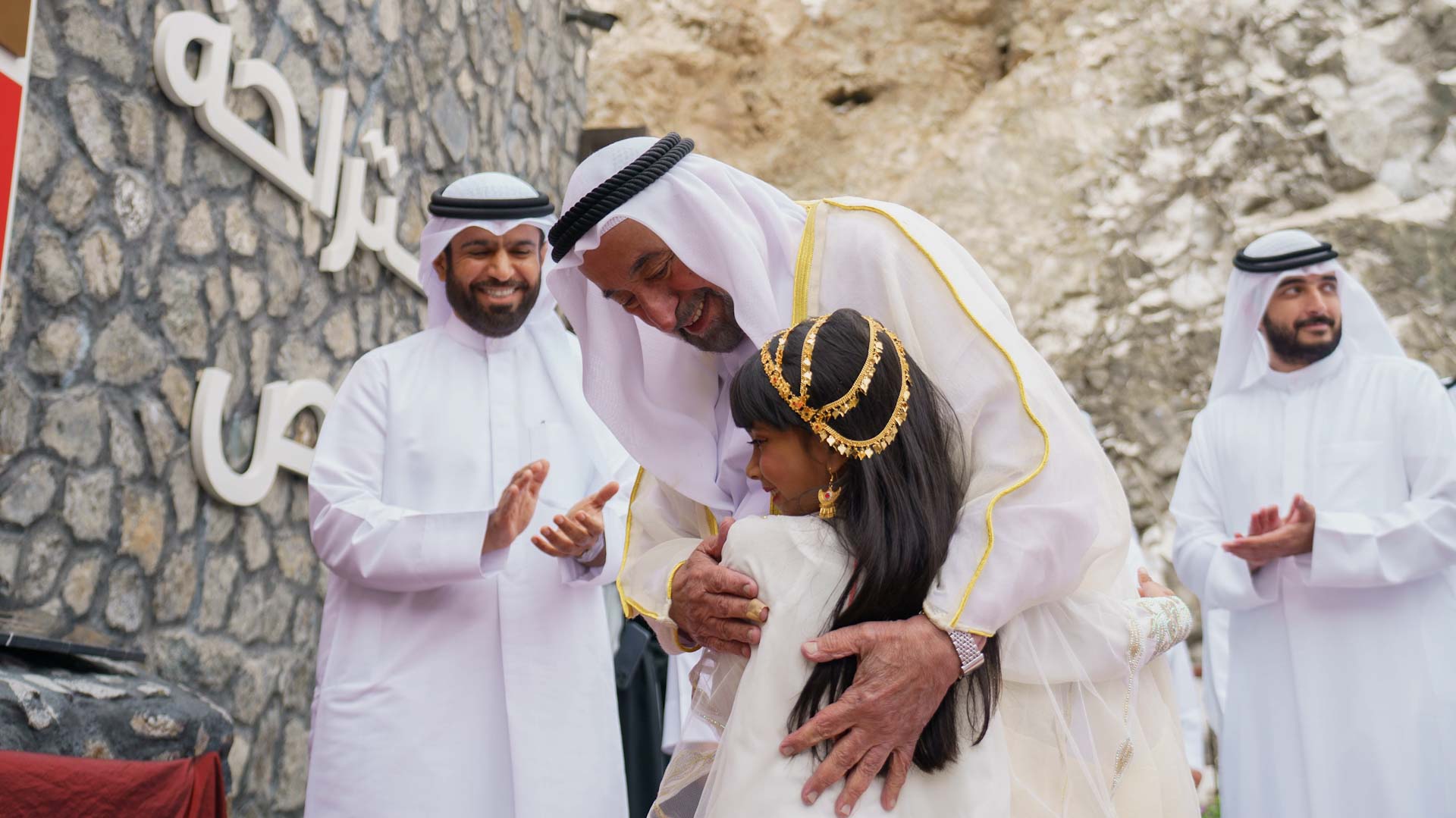 His Highness unveiled the memorial tablet marking the official inaugurating of the Shees Rest House, after that Sharjah Ruler listened to a poem presented by a girl from the region.