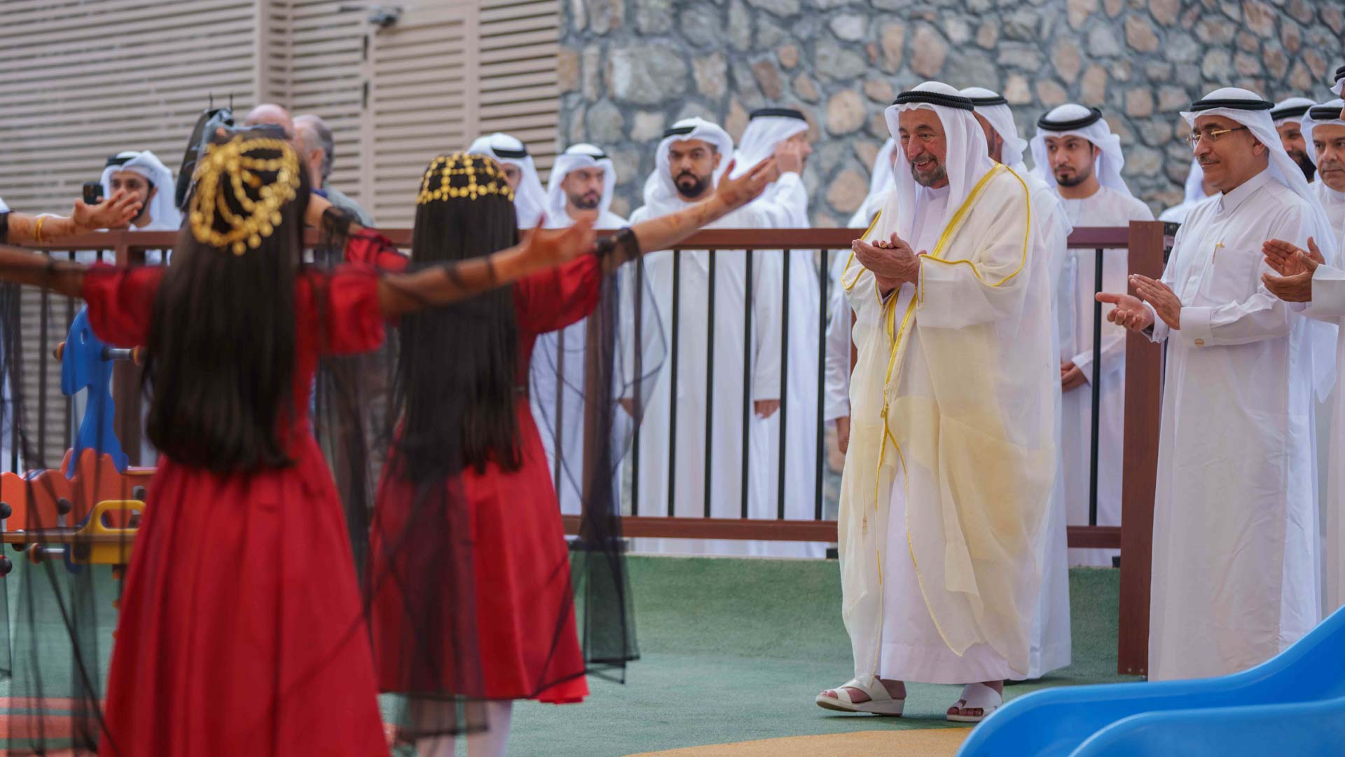 His Highness followed an artistic performance presented by a group of children from the region, singing the love of His Highness and his wife, after which he took souvenir photos with them.