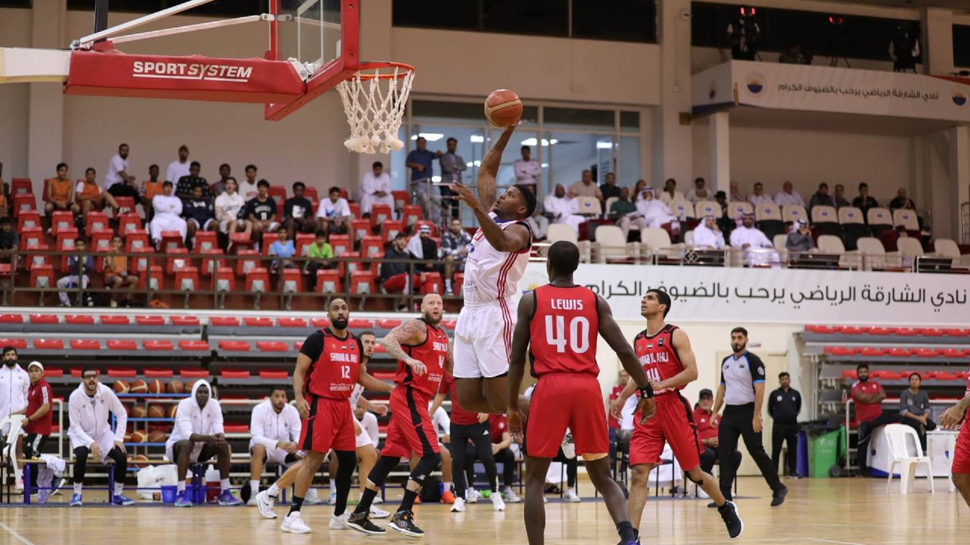 Sharjah men's basketball team prevailed for most of the match, leading in the first and second quarters, 26-19 and 26-24, while Shabab Al Ahly was able to win the third and fourth quarters with a score of 22-21, achieving the first tie 76-76 before the end of the final round, six minutes before finising the fourth quarter with a 10-point lead 30-20, winning two points 95-93.