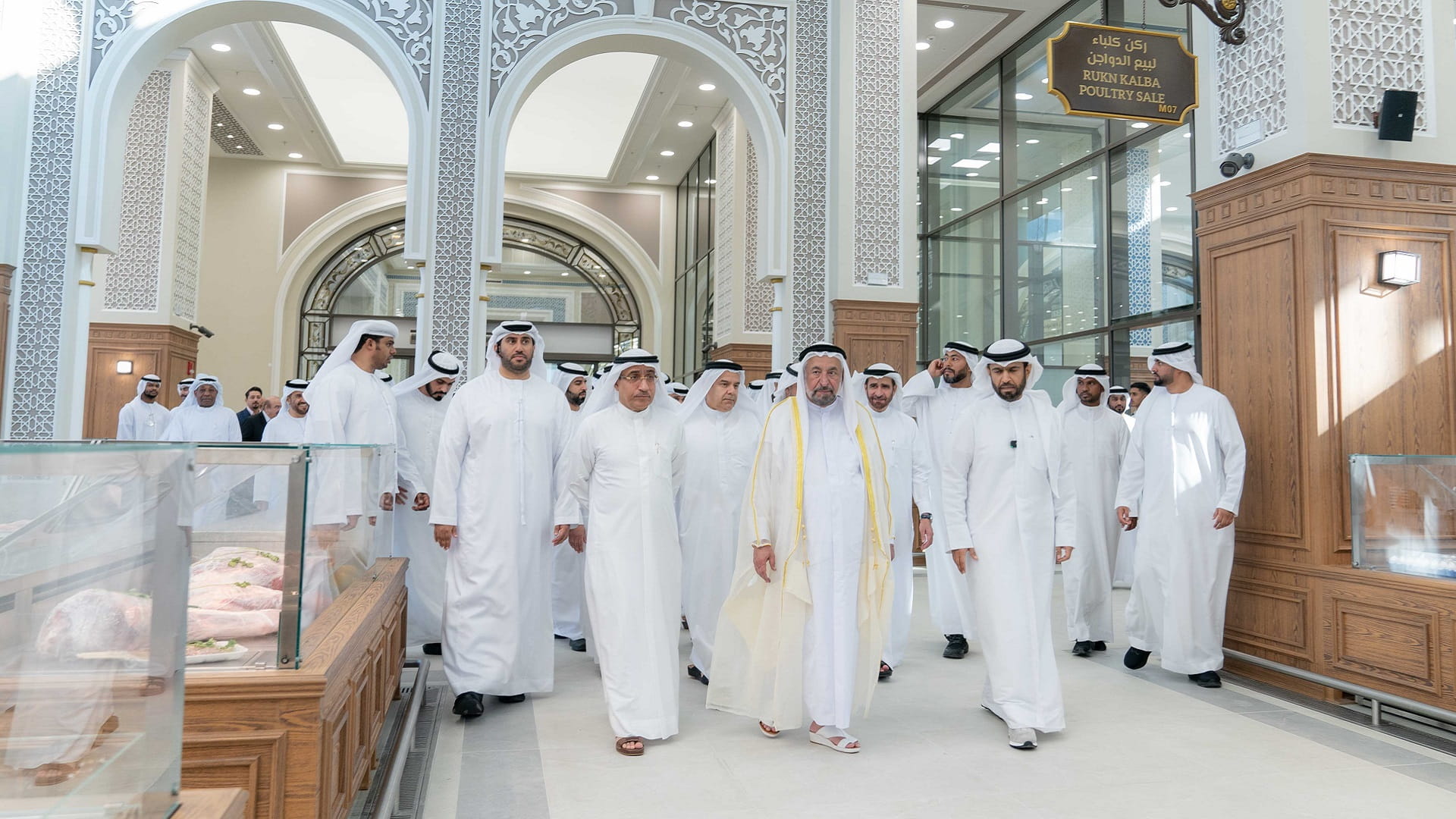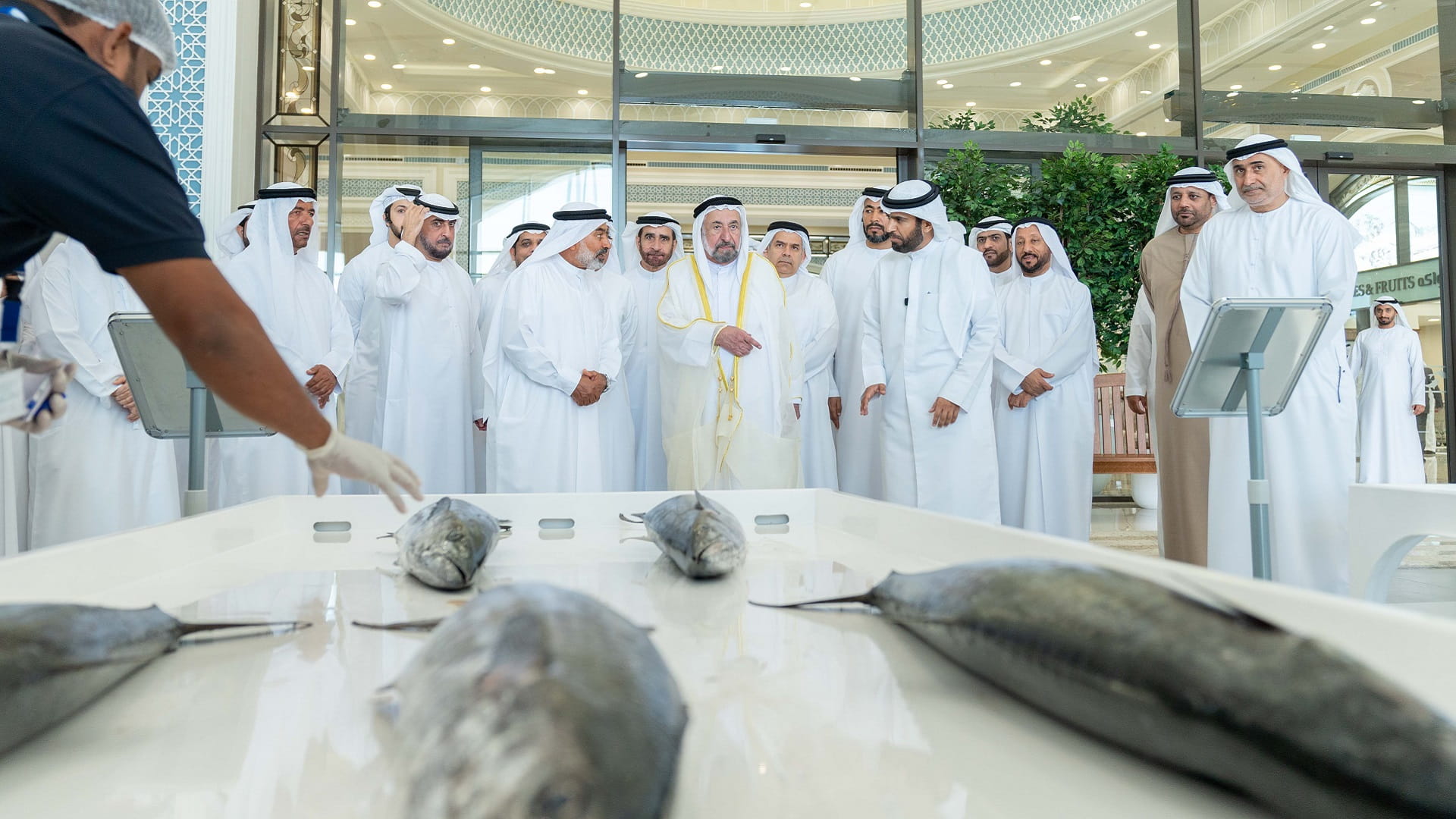 His Highness toured the souq's markets, the meat and poultry, the seafood, and the fruits and vegetables. There is also an auction area for the seafood.
