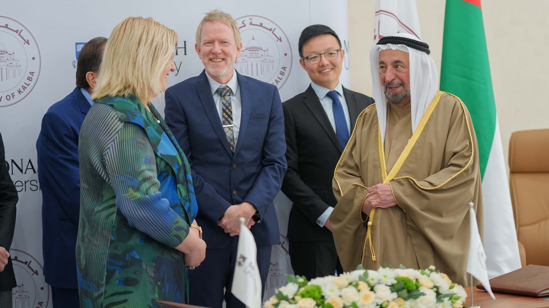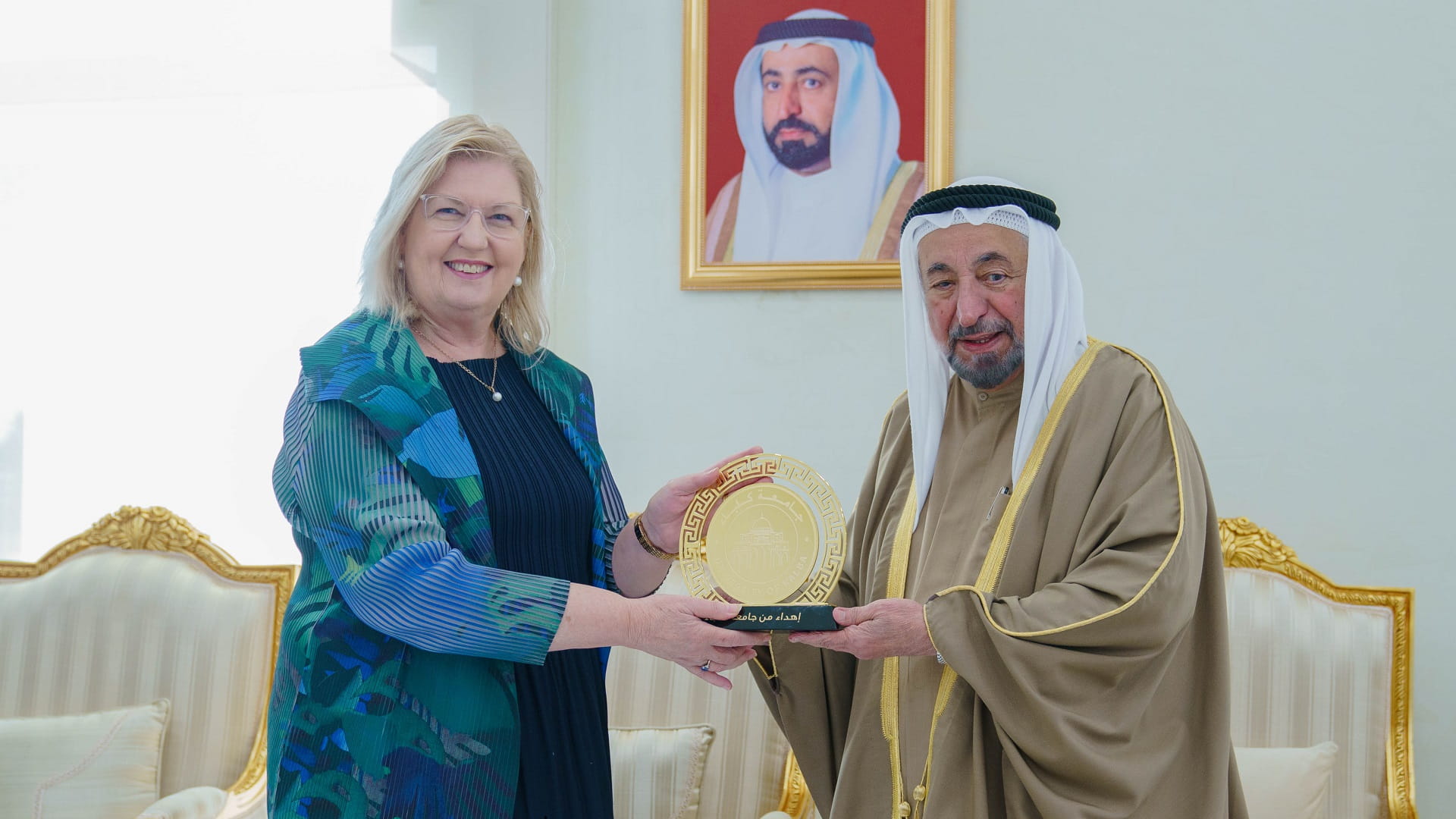 At the end of the signing of the agreement, His Highness the Ruler of Sharjah presented the University of Kalba’s commemorative shield to Professor Susan Elliott, while His Highness received a souvenir from Monash University.