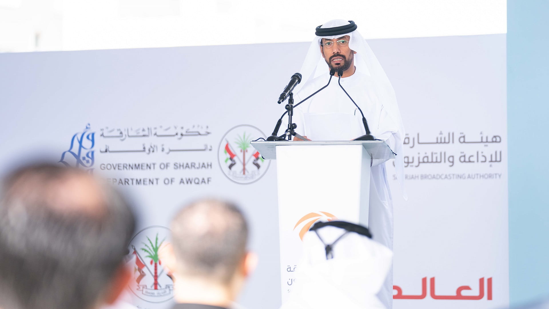 The opening ceremony was attended by Saeed Sultan Al Suwaidi, Chairman of the Sharjah Electricity, Water and Gas Authority; Dr. Khaled Omar Al Midfa, Chairman of Sharjah Media City (Shams); Talib Al Marri, Director General of Sharjah Awqaf; Mohammed Hassan Khalaf, Director General of Sharjah Broadcasting Authority; Tariq Saeed Allay, Director General of the Sharjah Government Media Bureau; Hassan Yacoub Al Mansouri, Secretary-General of Sharjah Media Council; and other government officials.