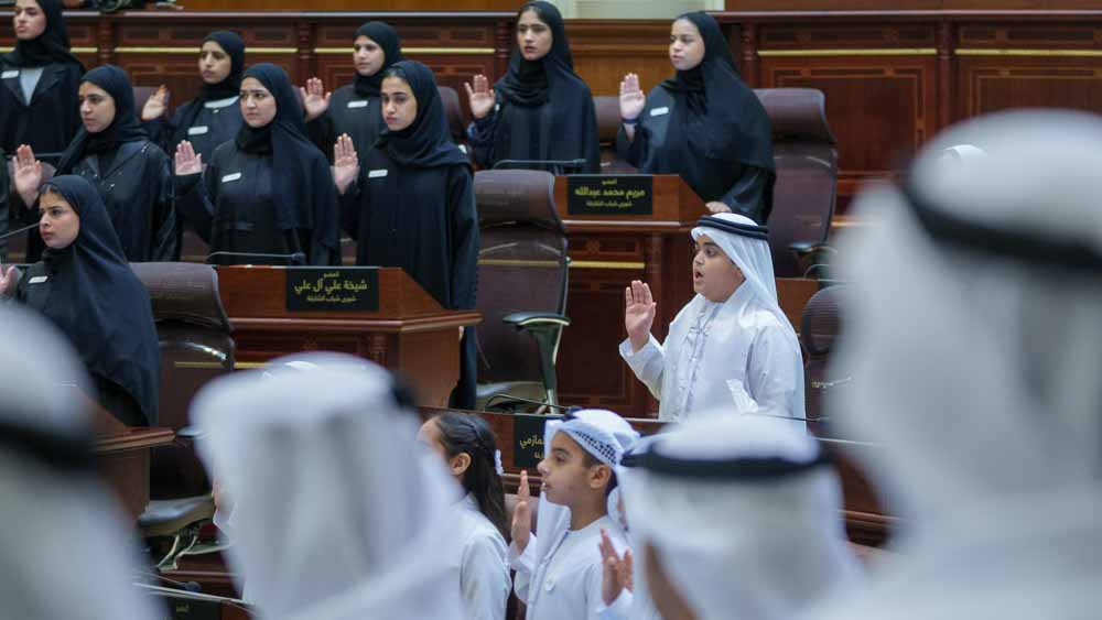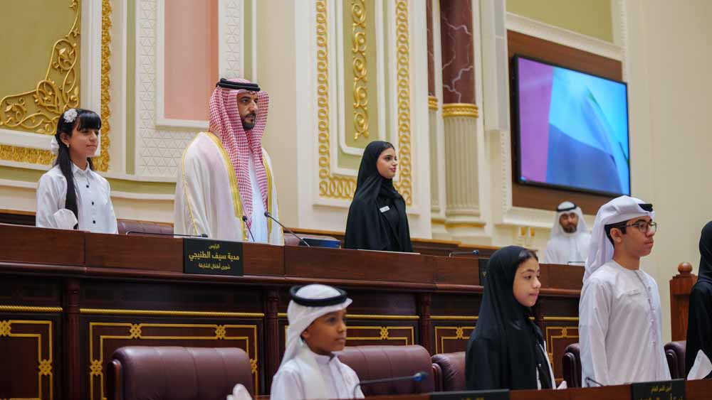 The ceremony began with the playing of the national anthem, followed by the recitation of verses from the Holy Quran, after which the 60 members of the Sharjah Children Shura Council and the 80 members of the Sharjah Youth Shura Council, held the event.