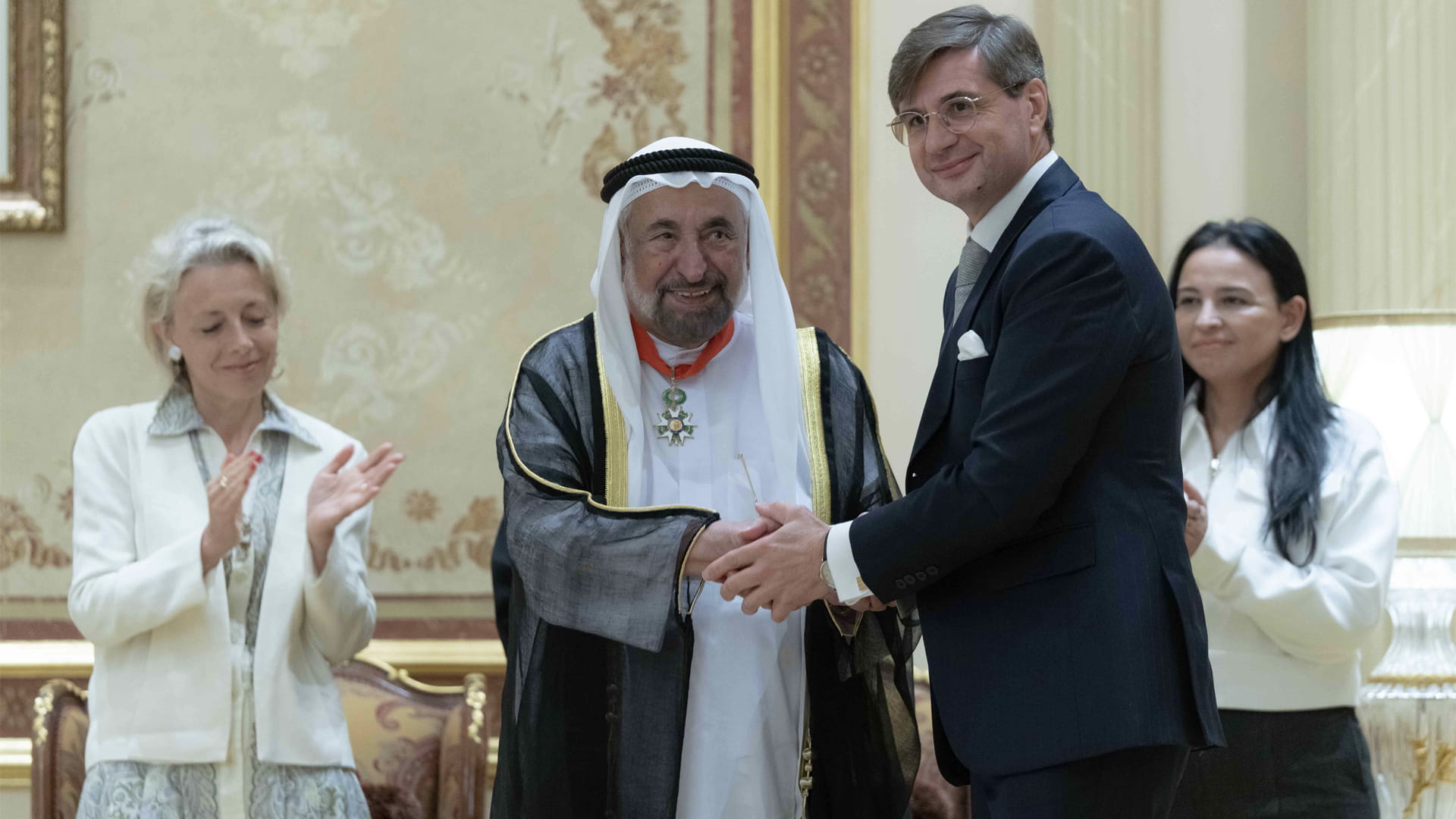 The French national honour recognised the Sharjah Ruler's distinguished and multifaceted leadership in areas as diverse as culture, youth education, humanitarian initiatives, civilisational dialogue, peaceful co-existence, and fruitful bilateral relations.