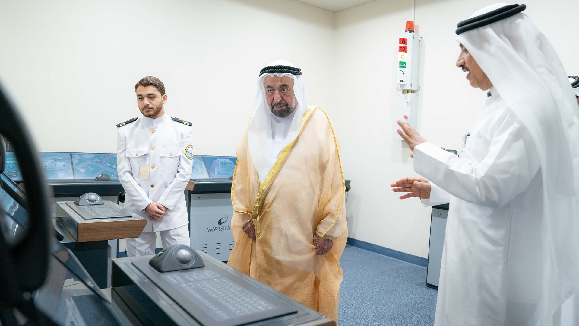 His Highness was accompanied by Sheikh Khalid bin Abdullah bin Sultan Al Qasimi, Chairman of the Sharjah Ports, Customs, and Free Zones Authority; Engineer Ali bin Shaheen Al Suwaidi, Head of the Sharjah Department of Public Works; Dr. Mansour bin Nassar, Head of the Sharjah Government Legal Department; Dr. Salah bin Butti Al Muhairi, Chairman of “Mubadara”; Mohammed Obaid Al Zaabi, Head of the Protocol and Hospitality Department; Dr. Hashim Abdullah Al Zaabi, Director of the Sharjah Maritime Academy.