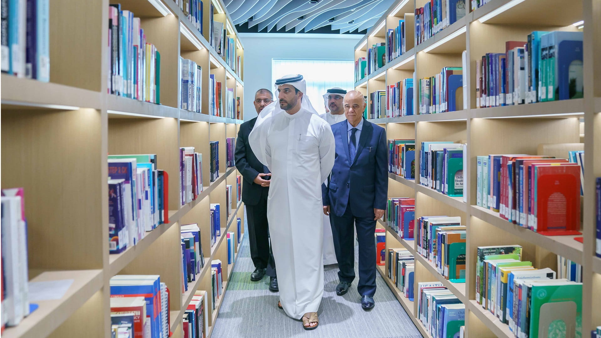 Sheikh Sultan bin Ahmed viewed the books provided by the library, which are considered useful sources of information for students, as the library provides more than 15,000 printed books and more than 100,000 e-books, in addition to 35 electronic databases that include a large number of scientific articles, video clips, pictures, etc.